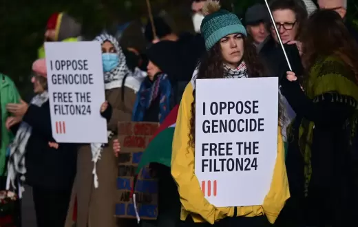 ويُذكر أن نشطاء مجموعة "فلتون 24" هم من بين عشرات النشطاء المؤيدين لفلسطين الذين أعتقلوا في المملكة المتحدة على خلفية مشاركتهم في تحركات احتجاجية استهدفت شركة "إلبيت سيستمز "، أكبر شركة أسلحة صهيونية، وذلك عقب اقتحام منشأة تابعة لها في منطقة فلتون قرب مدينة بريستول عام 2024، احتجاجًا على دورها في تصنيع معدات عسكرية تُستخدم في حرب الإبادة ضد الشعب الفلسطيني الأعزل.