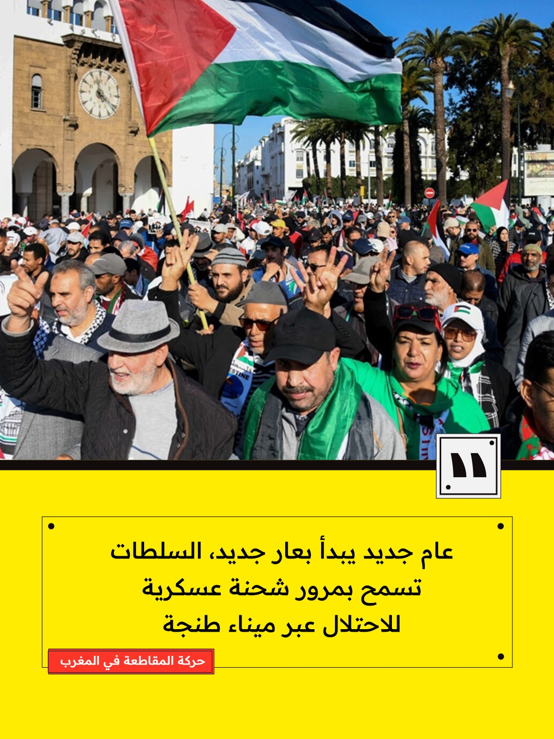 وختمت الحركة بيانها بالتشديد على أن “عامًا جديدًا يبدأ بعار جديد”، داعية إلى فرض حظر عسكري فوري ووقف استخدام الموانئ المغربية في خدمة الإبادة، تحت شعار، "لا موانئ للإبادة".
