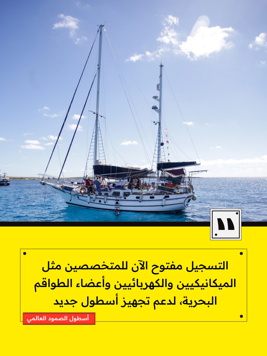 ودعا الأسطول الأفراد ذوي الخبرة في مجالات الميكانيكا والكهرباء والقيادة والعمل ضمن طواقم بحرية محترفة للتسجيل والمساهمة في تجهيز أسطول يزيد على 100 زورق استعدادًا لمهمة الربيع المقبلة.