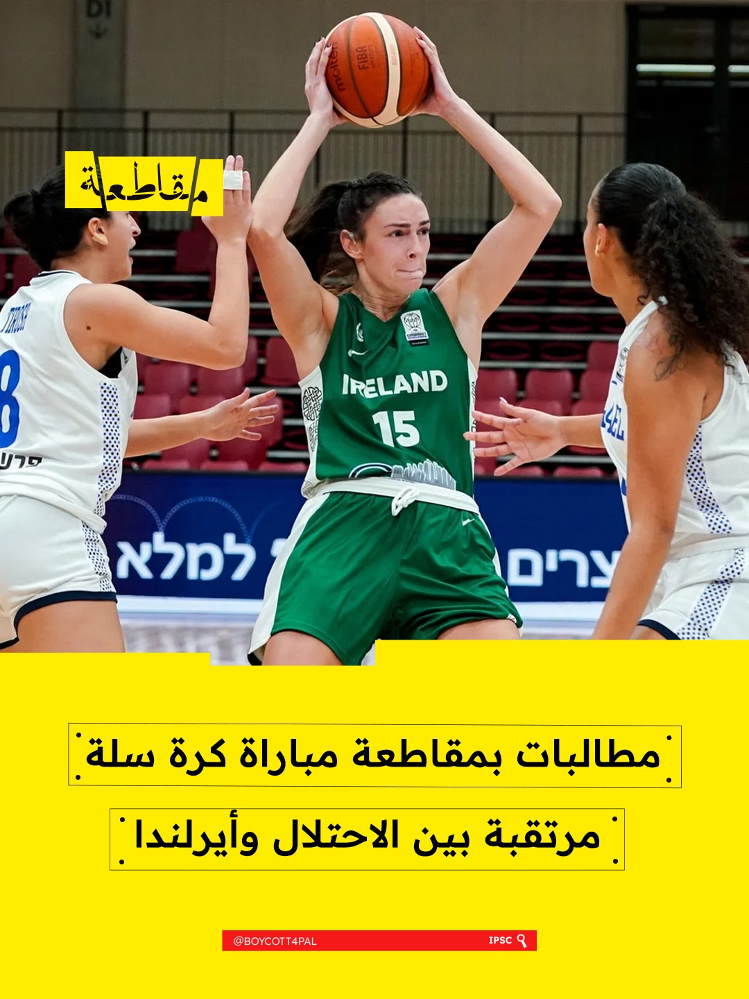 أكد الرئيس التنفيذي لاتحاد كرة السلة الأيرلندي جون فيهان أن منتخب السيدات سيخوض مباراته الأخيرة في تصفيات بطولة أوروبا 2027 أمام "إسرائيل" في مارس المقبل، في المقابل، طالبت حركة التضامن مع فلسطين بمنع إقامة المباراة، معتبرين المشاركة تطبيعًا مع الاحتلال.