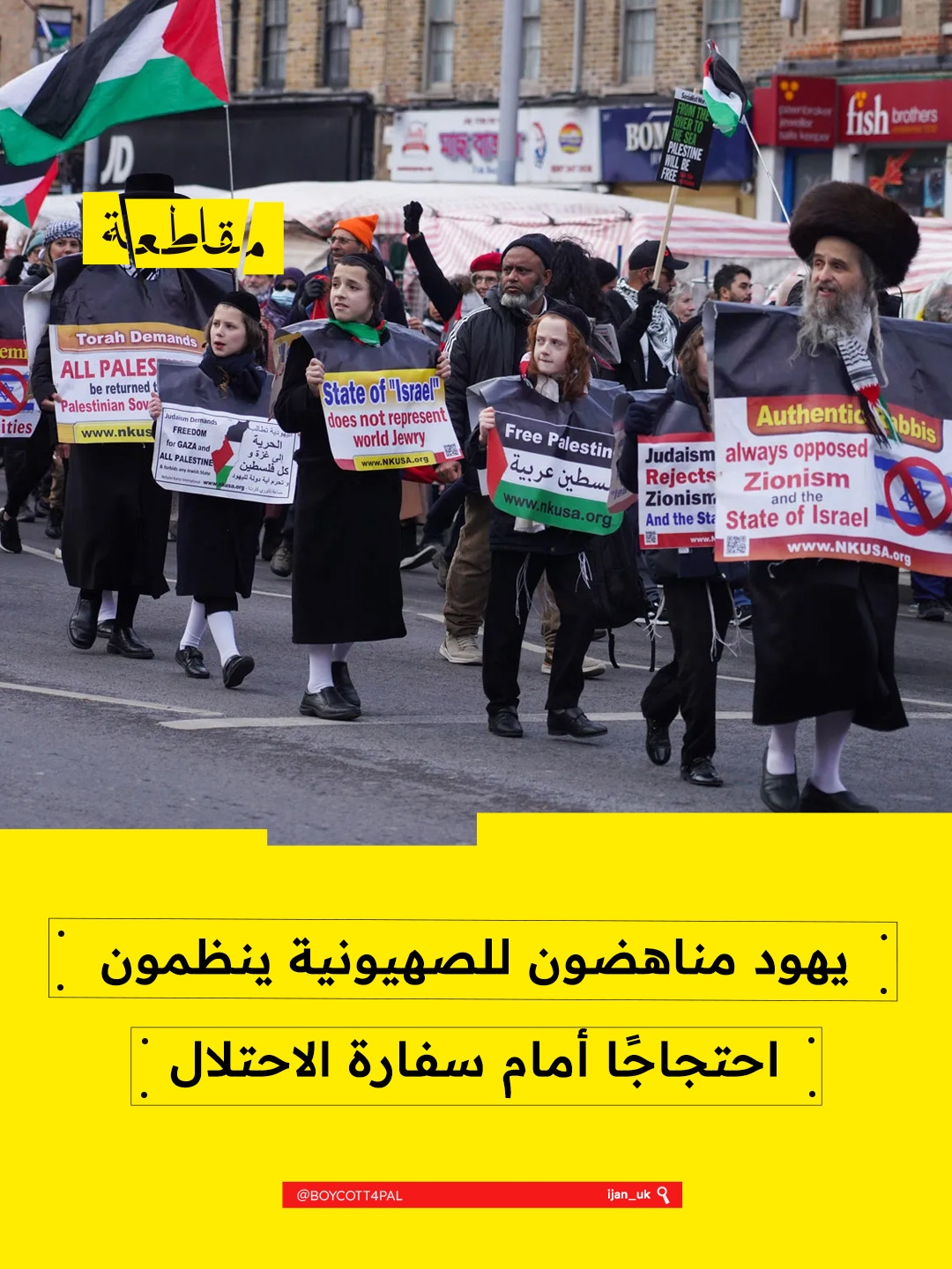 دعت الشبكة اليهودية الدولية المناهضة للصهيونية (IJAN) إلى المشاركة في اعتصامها الأسبوعي أمام السفارة الإسرائيلية في لندن، يوم الجمعة 16 يناير/كانون الثاني، من الساعة السادسة حتى السابعة مساءً، عند عنوان W8 4QB.