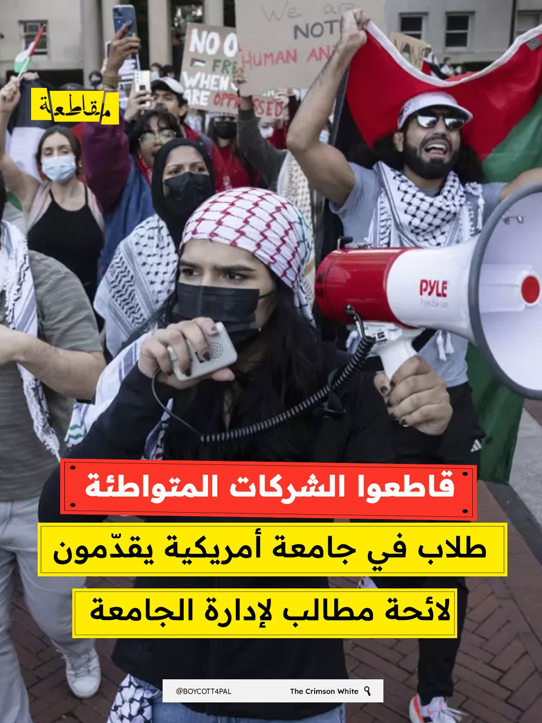 قدّم أعضاء منظمة "طلاب من أجل العدالة في فلسطين" بجامعة ألاباما في الولايات الأمريكية المتحدة، قائمة منقّحة من مطالبهم إلى رئيس الجامعة بيتر مولر خلال فعالية "صباحات مع مولر" التي تُنظم ضمن برامج الجامعة.