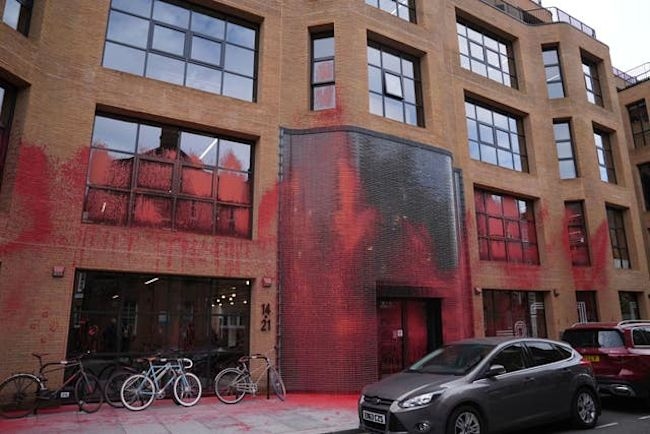 استهدف نشطاء داعمون لفلسطين مقر شركة الشحن العالمية "ميرسك” في كوبنهاجن بالدنمارك، حيث حطموا نوافذ المبنى ورشوا الطلاء على واجهته، احتجاجًا على دور الشركة في شحن معدات عسكرية إلى الاحتلال.