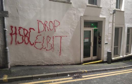تعرض فرع بنك HSBC في مدينة بانجور بشمال ويلز لهجوم من جماعات مؤيدة لفلسطين، في إطار سلسلة هجمات متكررة استهدفت البنك خلال الفترة الأخيرة. يأتي ذلك بسبب استثمارات HSBC في شركة الأسلحة الإسرائيلية "إلبيت سيستمز"، المتورطة في تزويد الجيش الإسرائيلي بالأسلحة المستخدمة في عمليات القصف والاحتلال في الأراضي الفلسطينية.