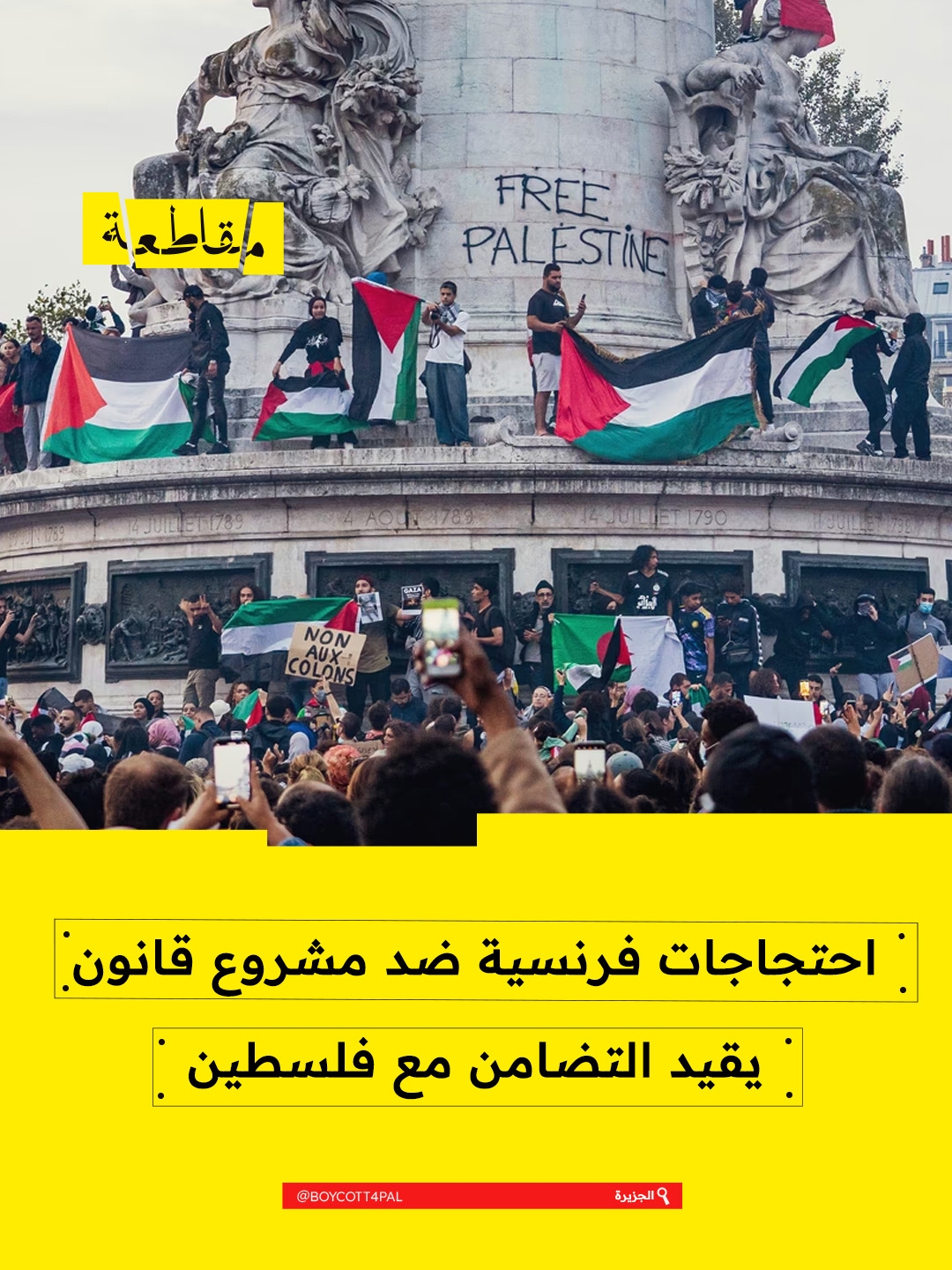 وشهدت العاصمة باريس مظاهرة احتجاجية أمام مقر البرلمان، شارك فيها العشرات من النشطاء والجمعيات التضامنية، مؤكدين أن القانون يفرض قيودًا على حرية الرأي وحرية النقاش السياسي، ويستهدف حركات التضامن بشكل مباشر.