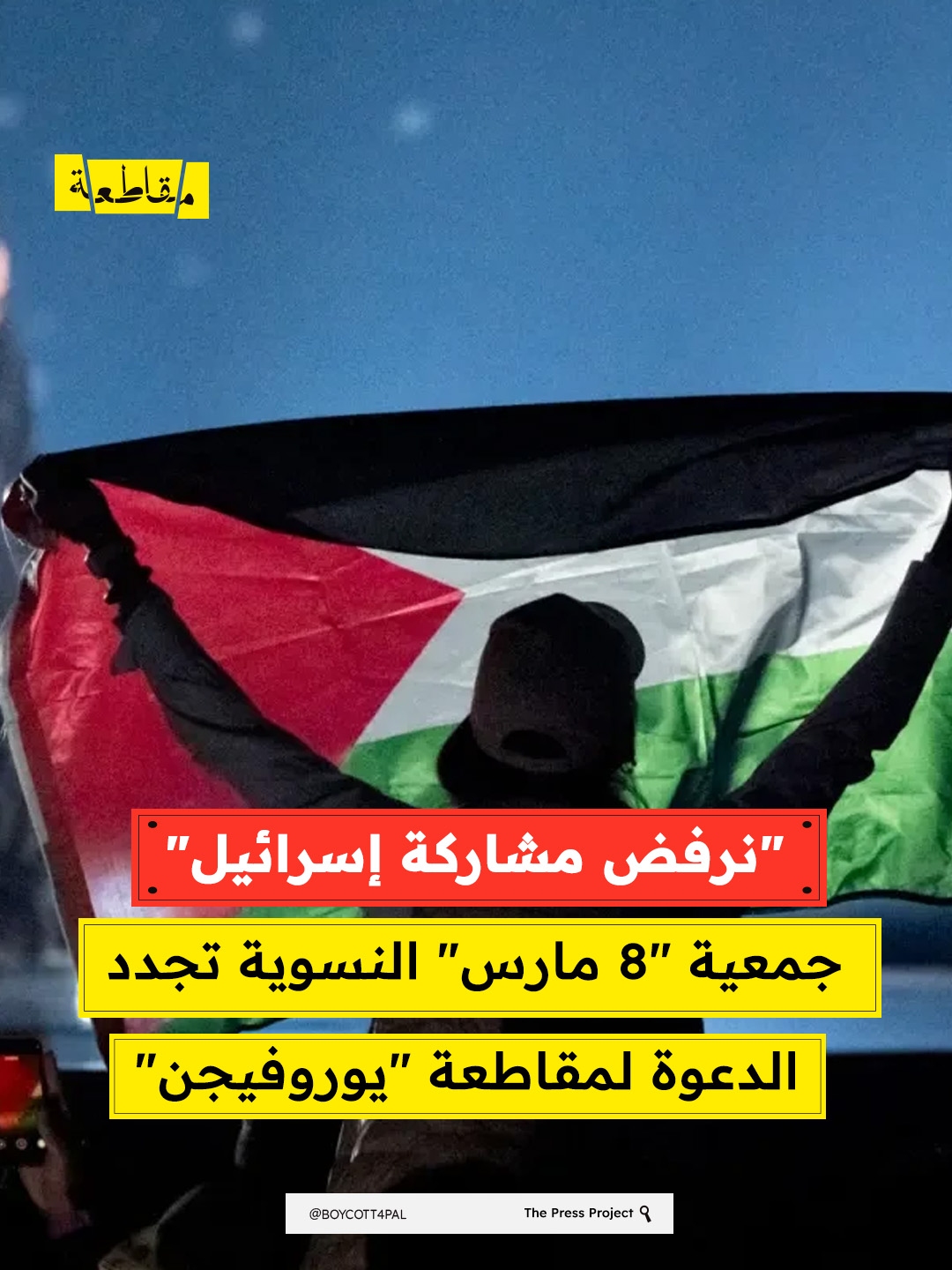 جدّدت المجموعة النسوية “تجمع 8 مارس” دعوتها لاستبعاد الاحتلال من مسابقة الأغنية الأوروبية “يوروفيجن”، متهمة المؤسسات الأوروبية بالانتقائية في الغضب الأخلاقي والتواطؤ مع العنف الاستعماري ضد الفلسطينيين.