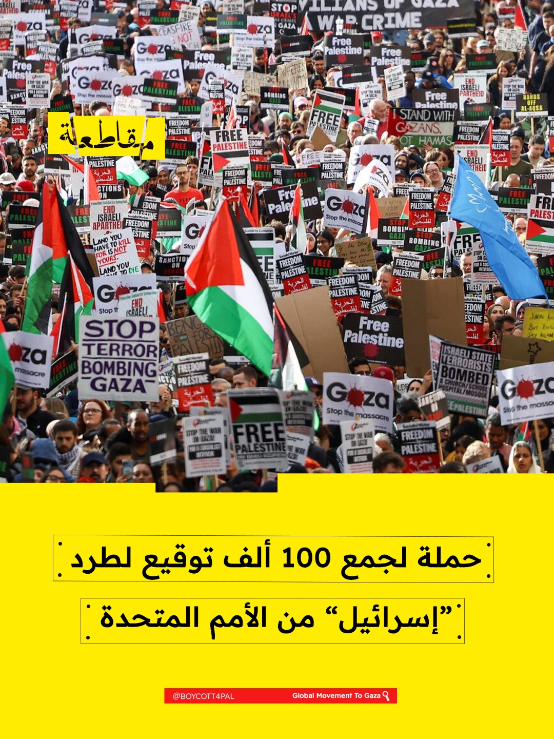 أطلق نشطاء تشيليون من "الحركة العالمية لغزة" مبادرة شعبية جديدة تحت اسم “FIRMA x PALESTINA” (وقّع من أجل فلسطين)، تهدف إلى جمع 100 ألف توقيع للمطالبة بطرد "إسرائيل" من عضوية الأمم المتحدة، استنادًا إلى الانتهاكات المستمرة والمتكررة لمبادئ وميثاق الأمم المتحدة.