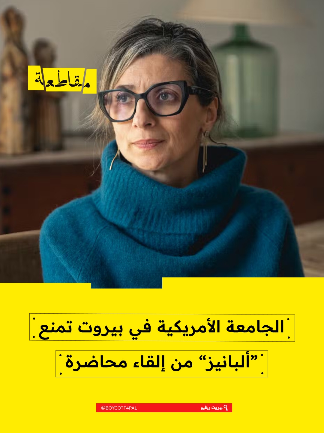 منعت الجامعة الأميركية في بيروت (AUB) المقرّرة الخاصة المعنية بحقوق الإنسان في الأراضي الفلسطينية المحتلة، فرانشيسكا ألبانيزي، من الدخول إلى حرمها لإلقاء محاضرة كانت مقررة، بذريعة “عدم اجتياز إجراءات الامتثال”، في خطوة تُعد جزءًا من الحملة الصهيونية التي تهدف إلى تقييد صوتها الداعم لحقوق الفلسطينيين.