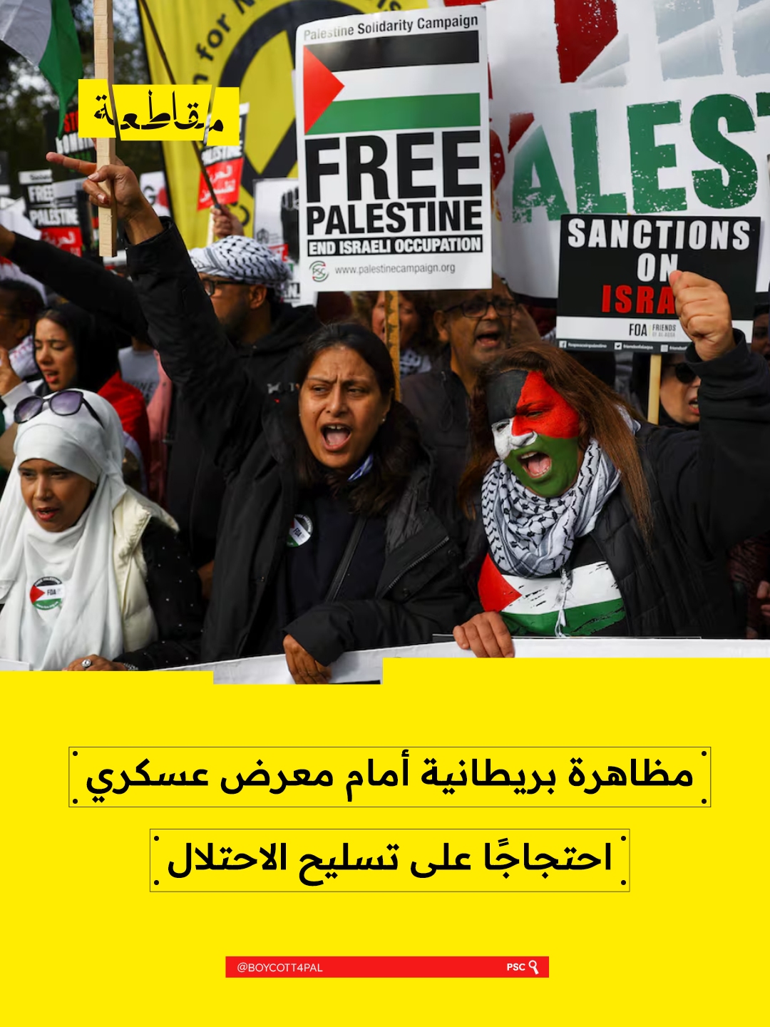 شهدت مدينة فارنبورو في مقاطعة هامبشير البريطانية مظاهرة احتجاجية نظّمها نشطاء ومتضامنون مع فلسطين، بدعوة من "حملة التضامن مع فلسطين"، تزامنًا مع انعقاد معرض المركبات المدرعة الدولي.