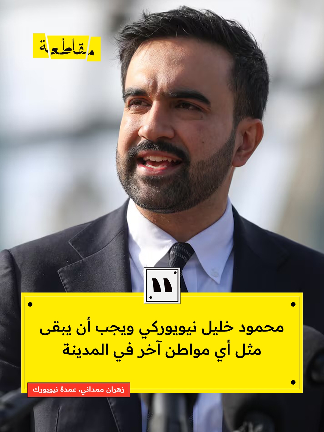 وتأتي تصريحات العمدة في ظل تصاعد ضغوط إدارة ترامب لترحيل خليل، الذي عرف بنشاطه المؤيد للقضية الفلسطينية ومشاركته في احتجاجات ضد "إسرائيل".