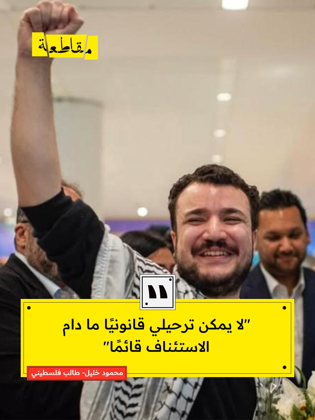 أكد الطالب الفلسطيني محمود خليل أن ترحيله من الولايات المتحدة غير ممكن قانونيًا في ظل استمرار عملية الاستئناف، مشددًا على أن أوامر المحكمة ما تزال سارية وتمنع احتجازه أو ترحيله. وفي ردّ على إعلان وزارة الأمن الداخلي نيتها ترحيله إلى الجزائر، قال خليل إن الإدارة الأمريكية لم تقدّم أي دليل على ارتكابه مخالفة قانونية، معتبرًا أن “جريمته” الوحيدة هي الاحتجاج على الإبادة في غزة، ومؤكدًا مواصلة دفاعه عن حقوق الفلسطينيين حتى نيل حريتهم .