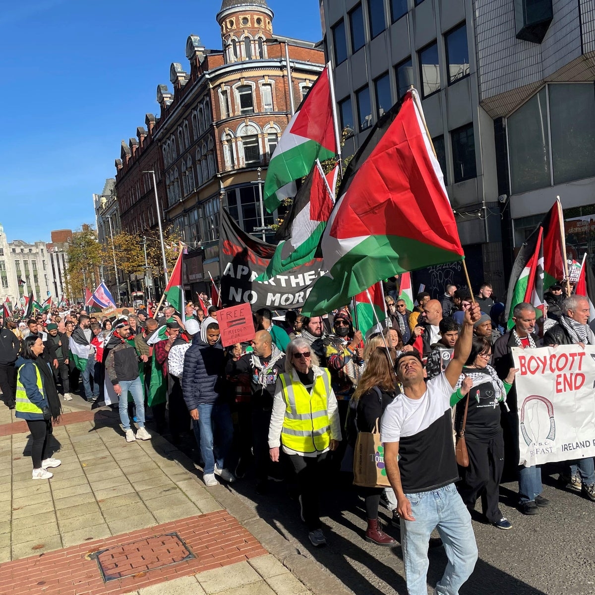 شهدت مدينة بلفاست، أمس السبت، مسيرة احتجاجية شارك فيها عشرات الناشطين، رفضًا للسياسات الأمريكية في عدد من القضايا الدولية، وعلى رأسها دعم الولايات المتحدة لـ"إسرائيل". ورفع المشاركون أعلام فلسطين وفنزويلا، مؤكدين تضامنهم مع الشعوب المتضررة من ما وصفوه بـ"السياسات الإمبريالية الأمريكية".