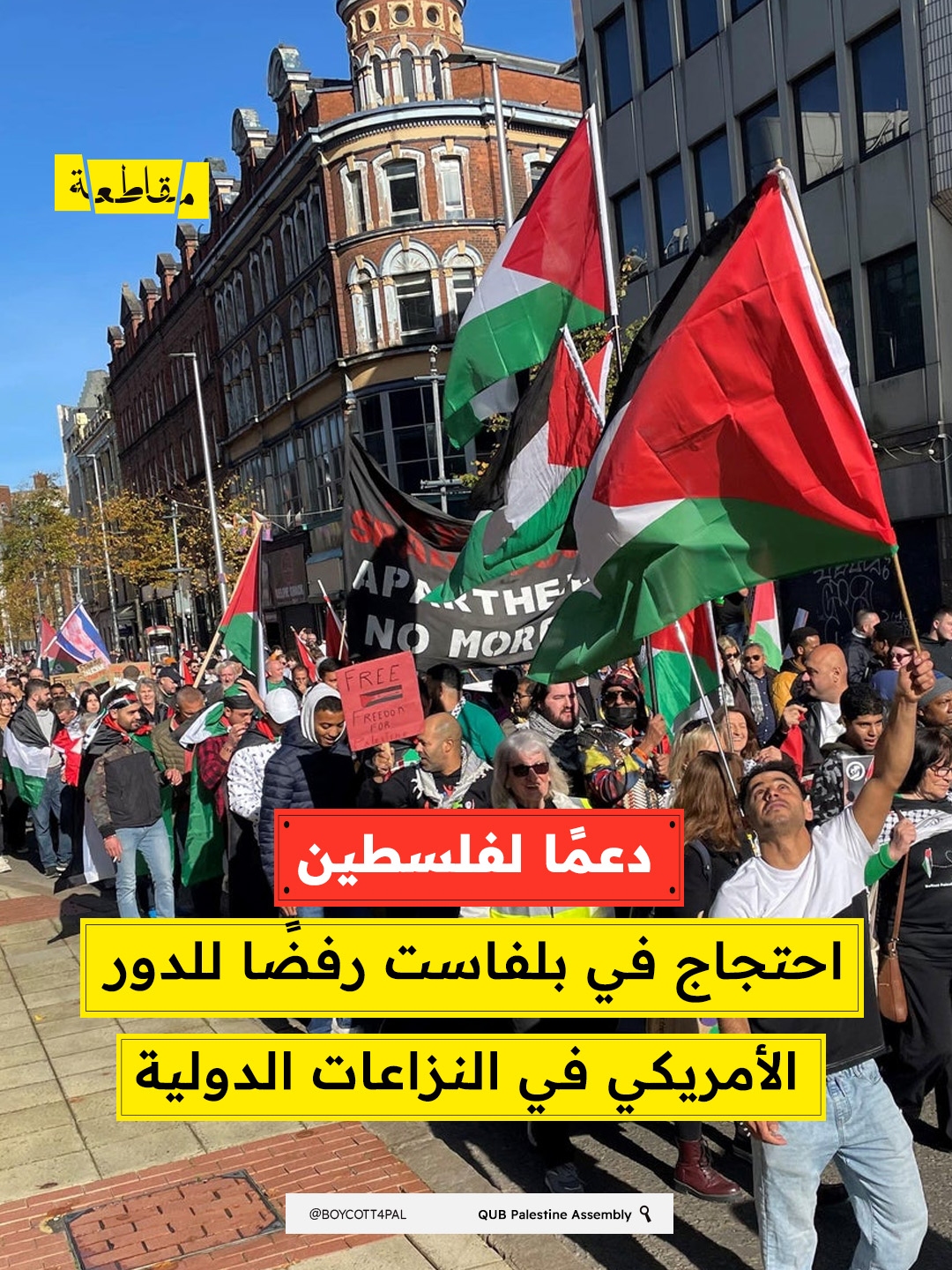 شهدت مدينة بلفاست، أمس السبت، مسيرة احتجاجية شارك فيها عشرات الناشطين، رفضًا للسياسات الأمريكية في عدد من القضايا الدولية، وعلى رأسها دعم الولايات المتحدة لـ"إسرائيل". ورفع المشاركون أعلام فلسطين وفنزويلا، مؤكدين تضامنهم مع الشعوب المتضررة من ما وصفوه بـ"السياسات الإمبريالية الأمريكية".