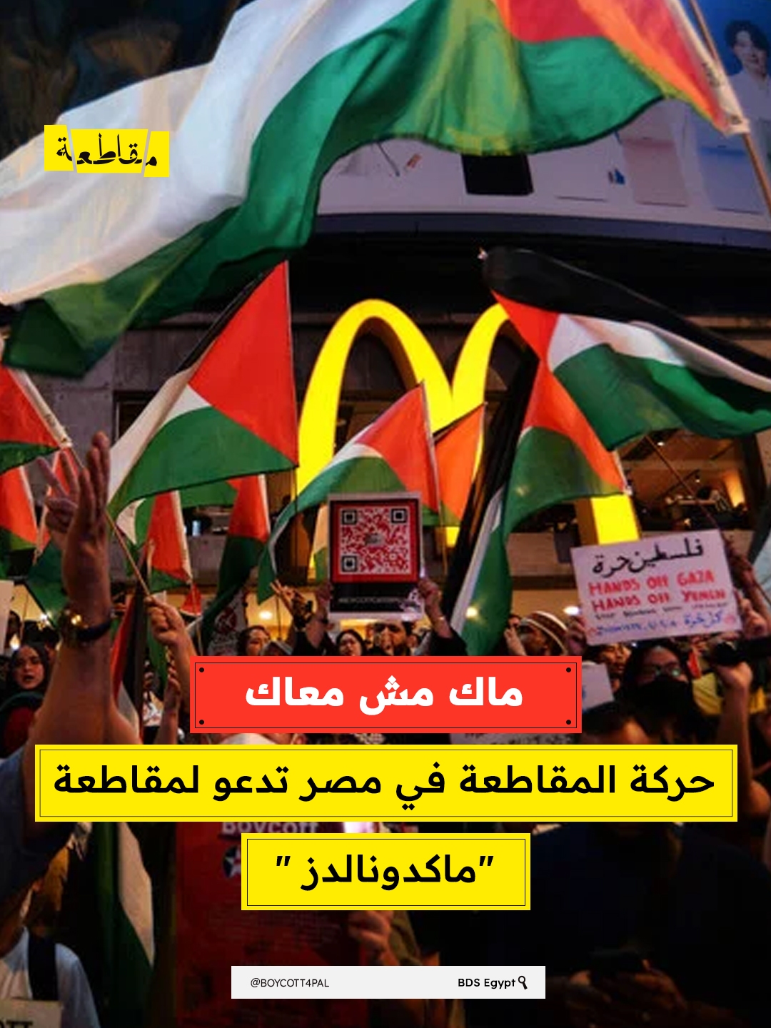 دعت "حركة المقاطعة" في مصر الجمهور إلى تجديد مقاطعة سلسلة مطاعم "ماكدونالدز"، مشيرة إلى أن الشركة العالمية أصبحت منذ عام 2024 مالكة مباشرة لإدارة فروعها في "إسرائيل"، ما يجعلها مسؤولة عن كافة الأرباح