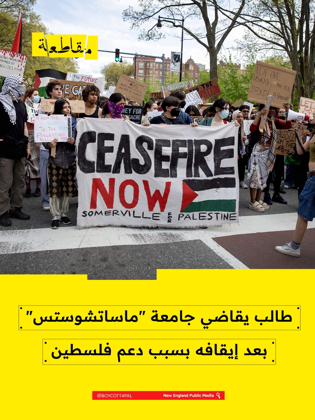 أفاد محامو طالب في جامعة ماساتشوستس أمهيرست، كان منخرطًا في حركة “طلاب من أجل العدالة في فلسطين”، بأنه تم إيقافه عن الدراسة في ديسمبر/كانون الأول الماضي على خلفية مشاركته في احتجاجات طلابية ضد شركة رايثيون لتصنيع الأسلحة.