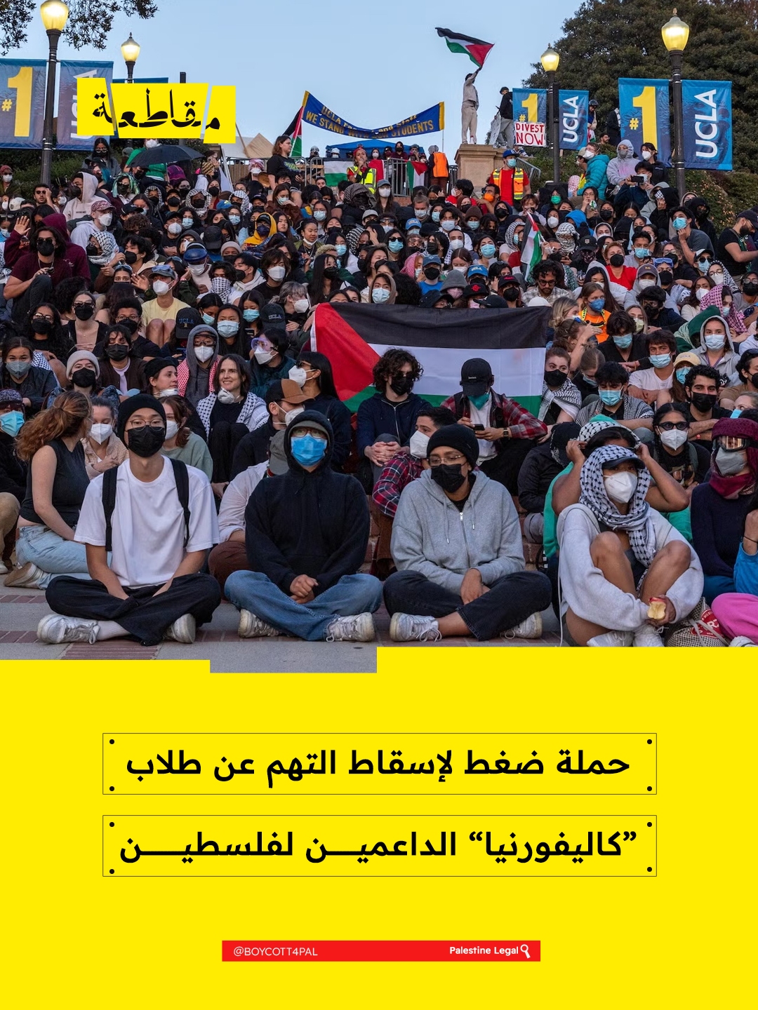 وفي هذا السياق، تواصل منظمة فلسطين القانونية متابعة القضايا، وسط دعوات متصاعدة لمطالبة إدارة جامعة كاليفورنيا في لوس أنجلوس بإسقاط جميع القضايا التأديبية بحق الطلاب المؤيدين لفلسطين عبر مراسلتها والضغط عليها مباشرة.