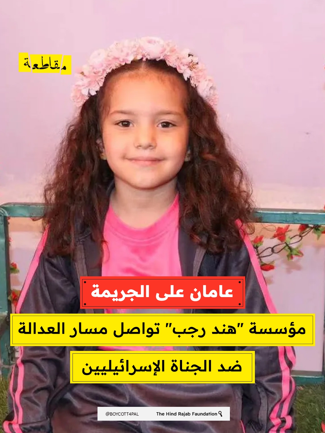 بمناسبة الذكرى السنوية الثانية لمقتل الطفلة هند رجب البالغة من العمر خمس سنوات، أكدت مؤسسة "هند رجب" أن هذه الذكرى ليست مجرد لحظة تأمل، بل لحظة مساءلة ومتابعة للعدالة. وأوضحت المؤسسة أنها تعرف أسماء الجناة ورتبهم ووحداتهم العسكرية، وتعمل على متابعة قضايا قانونية ملموسة في ولايات قضائية حقيقية لضمان مساءلتهم.