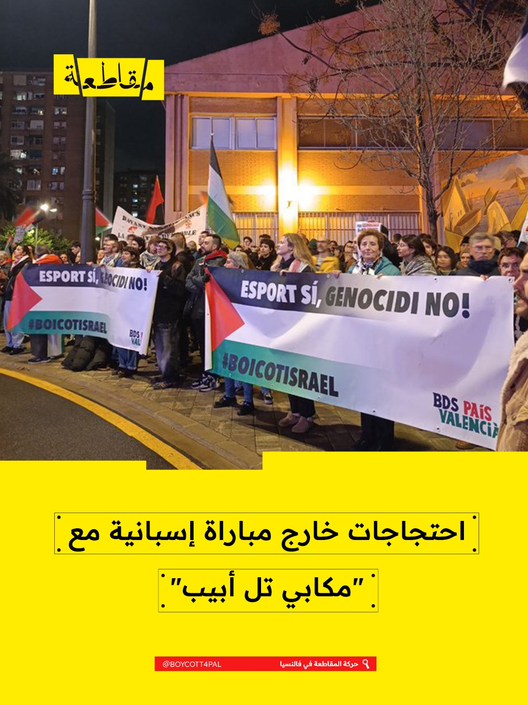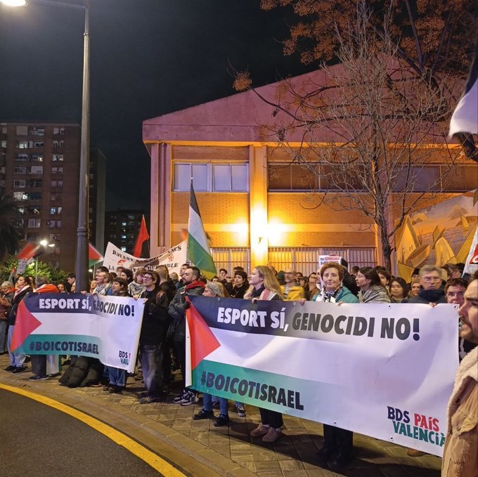 شهدت قاعة "رويغ أرينا" ومحيطها في مدينة فالنسيا، يومي 29 و30 يناير 2026، احتجاجات داعمة لفلسطين، تزامنًا مع إقامة مباراة الدوري الأوروبي لكرة السلة (Euroliga) بين فريقي فالنسيا باسكت ومكابي "تل أبيب"، وذلك وسط إجراءات أمنية وُصفت بالمشددة.