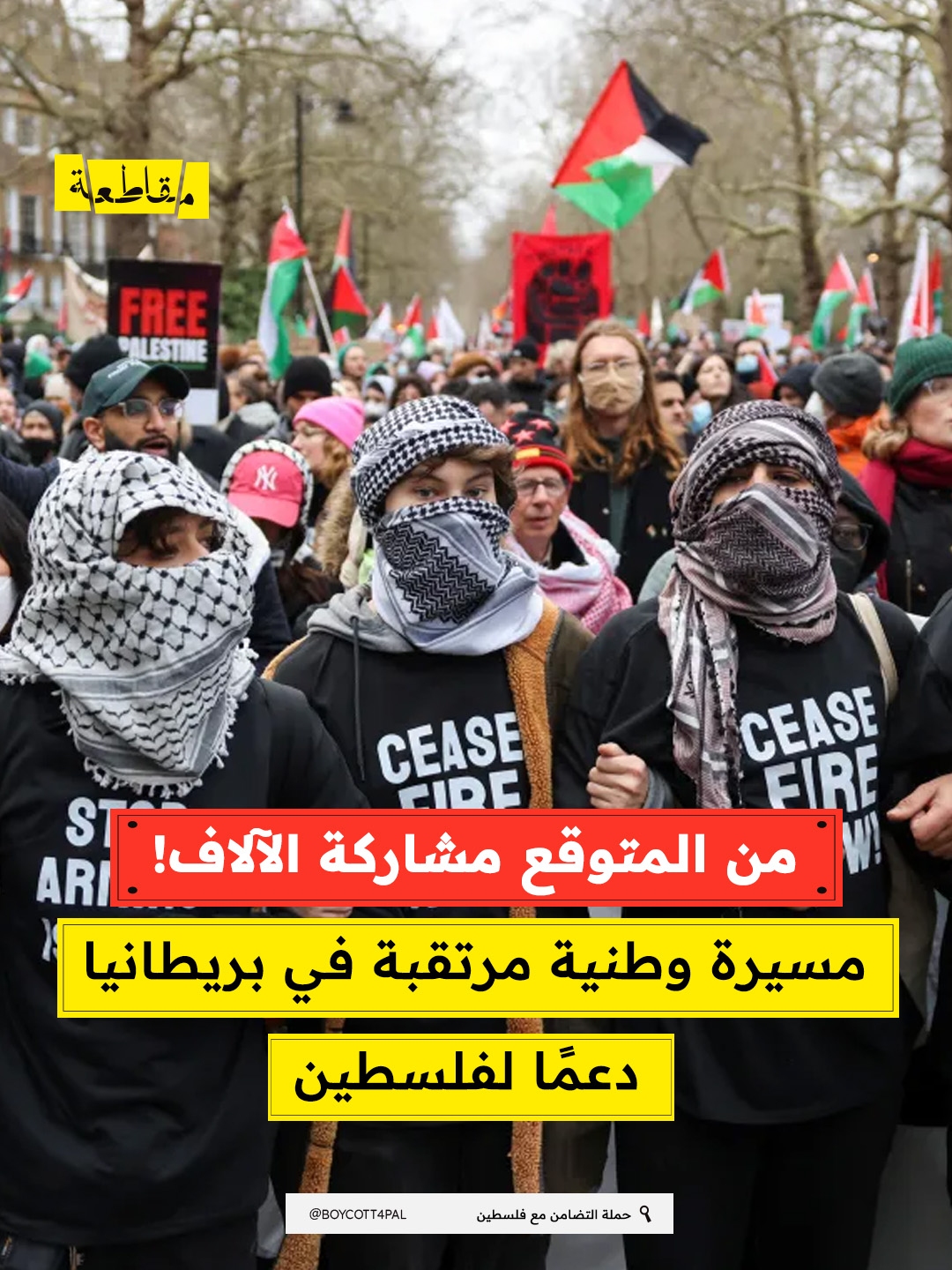 وأكد الائتلاف، الذي يضم منظمات بينها حملة التضامن مع فلسطين، والمنتدى الفلسطيني في بريطانيا، وأصدقاء الأقصى، وائتلاف أوقفوا الحرب، والرابطة الإسلامية في بريطانيا، وحملة نزع السلاح النووي، أنه خاطب شرطة العاصمة رسميًا مطالبًا بتغيير مسار مسيرة حزب استقلال المملكة المتحدة، مع التشديد على المضي قدمًا في تنظيم المسيرة الوطنية من أجل فلسطين مع اتخاذ تدابير إضافية لضمان سلامة المشاركين.