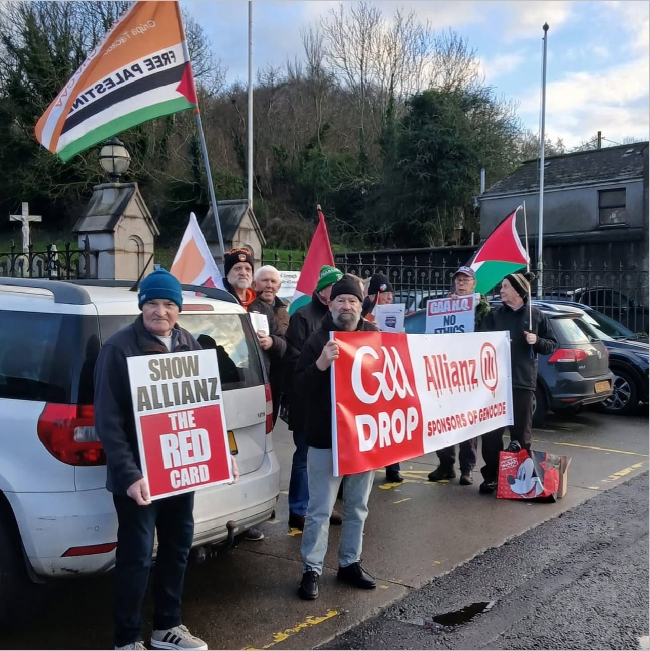 شهد محيط ملعب مباراة أرماغ ضد غالواي، ضمن منافسات الاتحاد الغيلي الإيرلندي (GAA)، وقفة احتجاجية نظمها مؤيدون لفلسطين، رفضًا لاستمرار رعاية شركة "أليانز" بتجاهل القيادة الوطنية للاتحاد لمطالب القاعدة الشعبية بإنهاء هذه الرعاية. وأكد المحتجون أن تحركهم لا يستهدف اللاعبين أو الفرق المشاركة، مشددين على أن المسؤولية تقع على عاتق قيادة GAA التي تواصل تجاهل نداءات حركة المقاطعة.