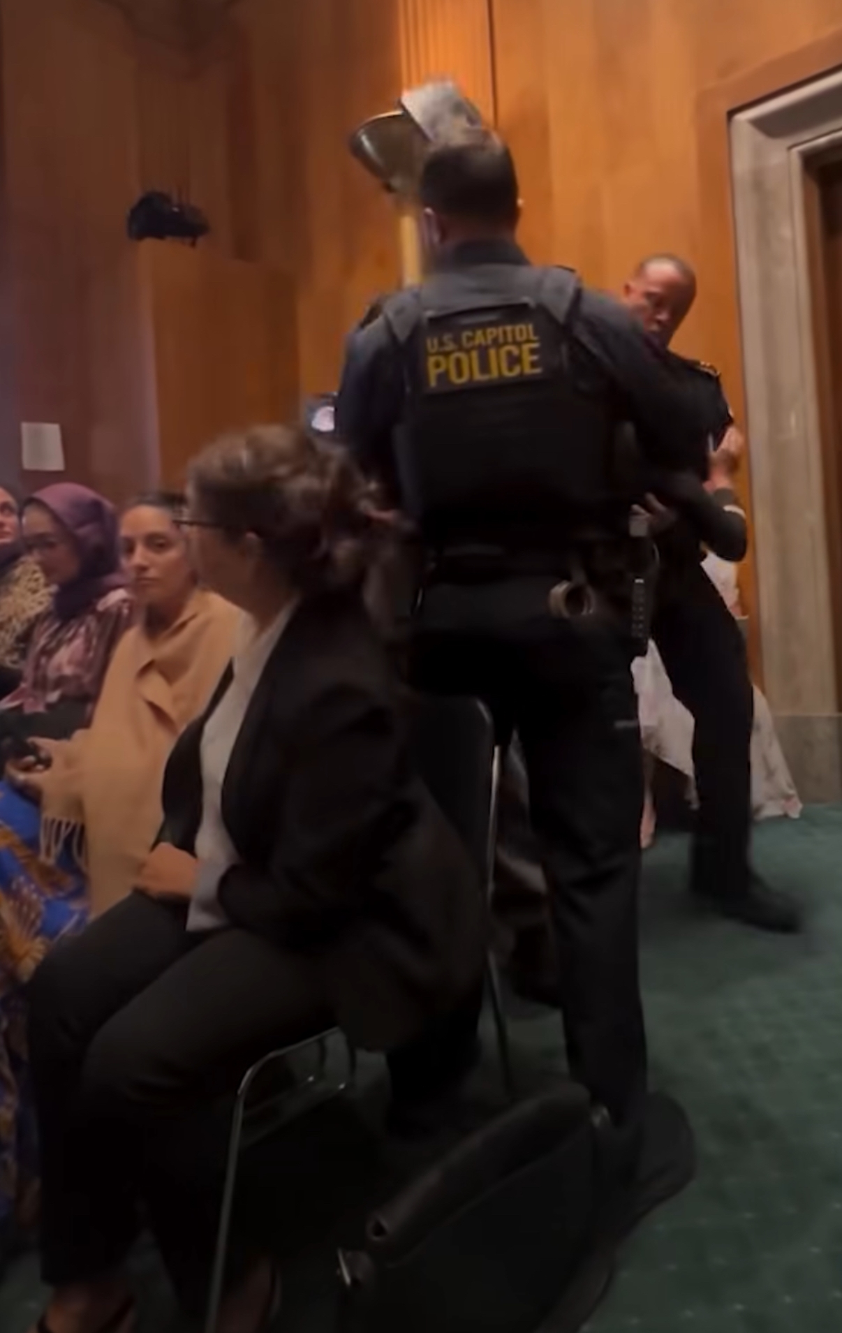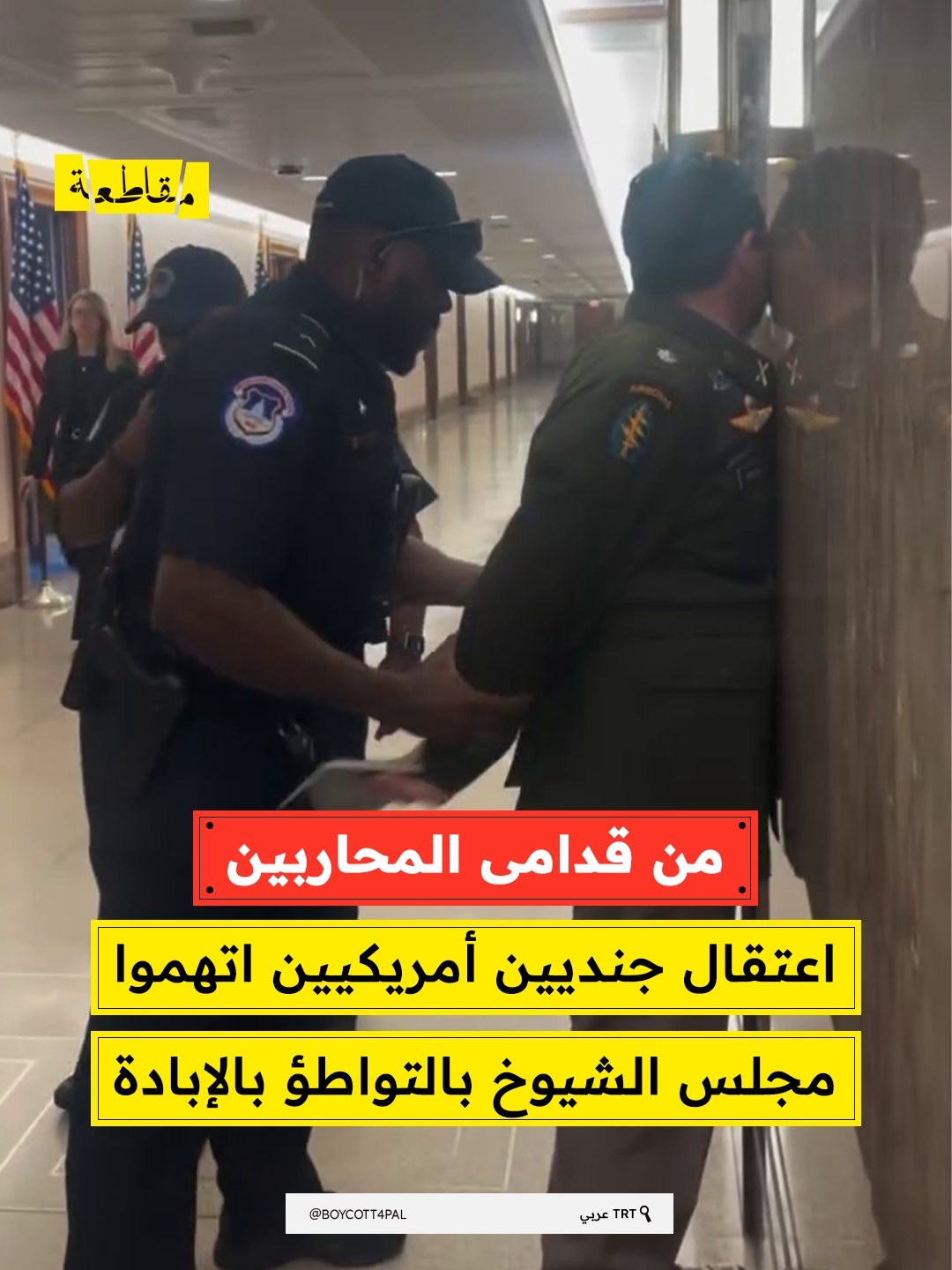 أوقفت السلطات الأمريكية جنديين من قدامى المحاربين بعد أن قاطعا جلسة استماع في مجلس الشيوخ حول الشؤون الخارجية، متهمين حكومة الولايات المتحدة بدعم الإبادة الجماعية التي تنفذها "إسرائيل" في قطاع غزة، مرددين: “أنتم متواطئون في إبادة جماعية”