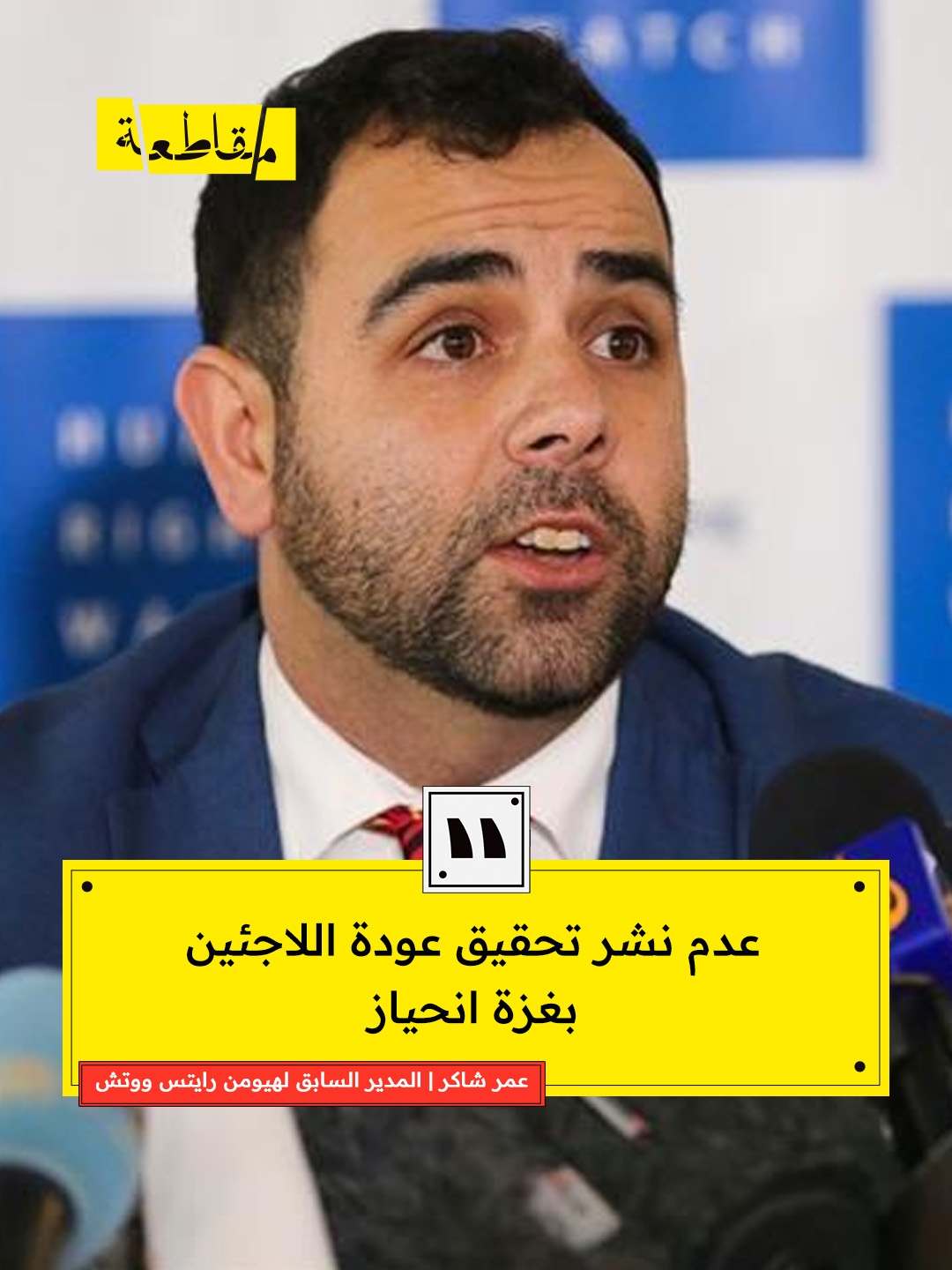 صرّح المدير السابق لمنظمة “هيومن رايتس ووتش” في فلسطين، عمر شاكر خلال مقابلة بأن حق العودة للاجئين الفلسطينيين يعد من الحقوق الأساسية التي يجب أن تُراعى في معايير عمل المنظمة الدولية.