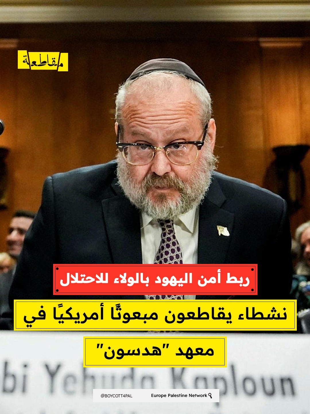 قاطع نشطاء مؤيدون لحقوق الفلسطينيين الحاخام يهودا كابلون، المبعوث الأمريكي لمكافحة ما يُسمّى "معاداة السامية"، خلال فعالية نظمها معهد هدسون، وذلك اعتراضًا على تصريحاته التي زعم فيها أن أمن اليهود يعتمد على الولاء غير المشروط لإسرائيل.