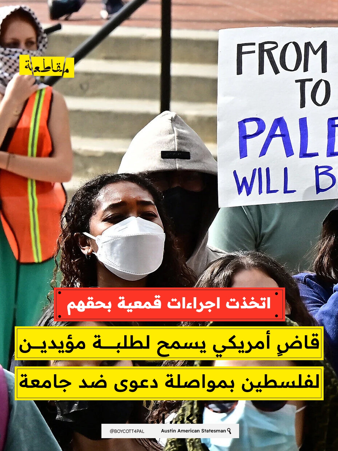 سمح قاضٍ فدرالي في الولايات المتحدة لعدد من طلبة جامعة تكساس بمواصلة دعوى قضائية ضد إدارة الجامعة، بسبب اتخاذها إجراءات انتقامية بحقهم عقب مشاركتهم في احتجاجات مؤيدة لفلسطين عام 2024، مشيرين إلى ان ذلك يعد انتهاكًا لحقهم في حرية التعبير.