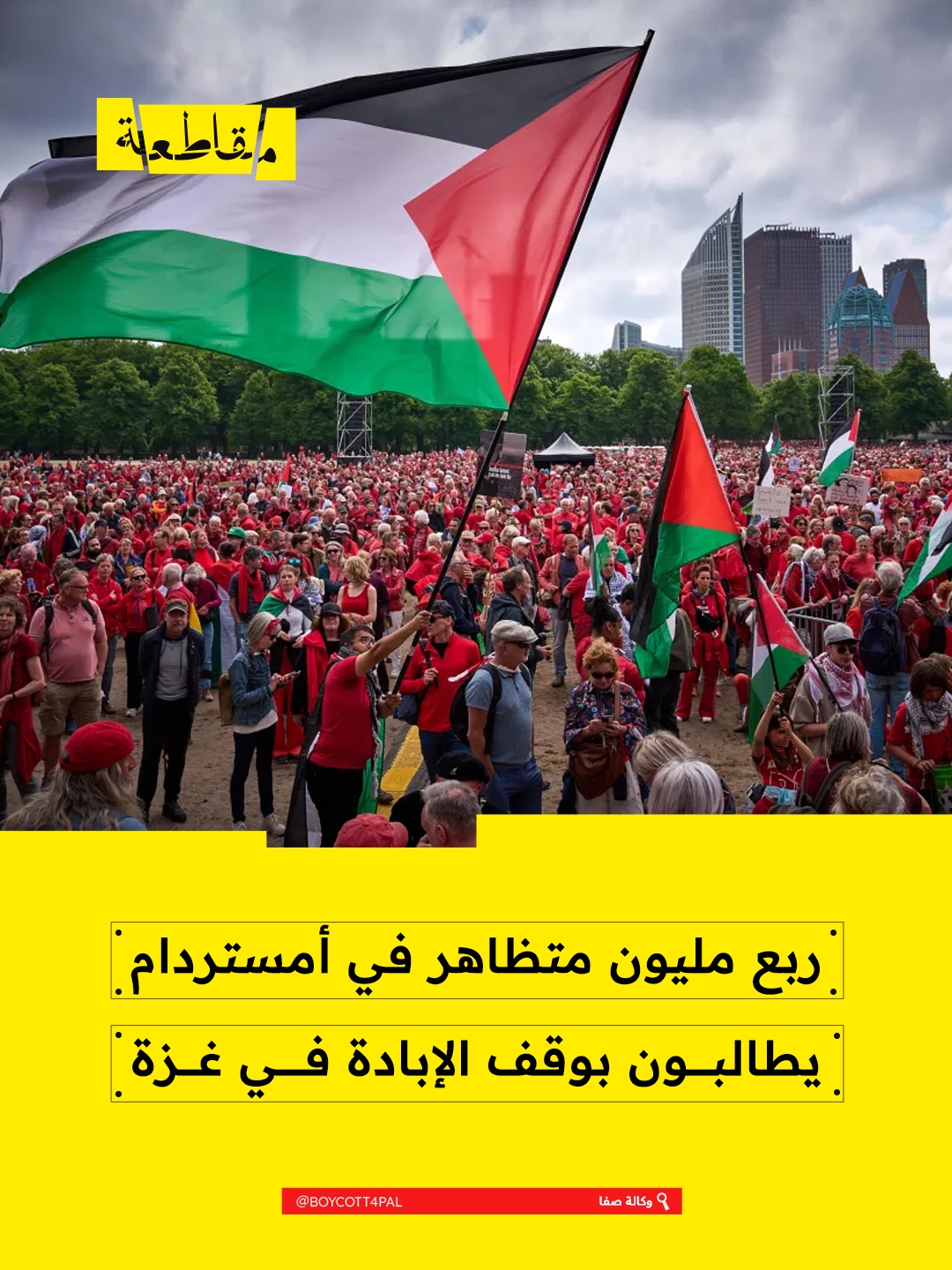 شارك نحو 250 ألف شخص في تظاهرة حاشدة بالعاصمة الهولندية أمستردام، مساء الأحد، مطالبين حكومة بلادهم باتخاذ موقف أكثر صرامة تجاه حرب الإبادة التي تشنها "إسرائيل" على قطاع غزة.
