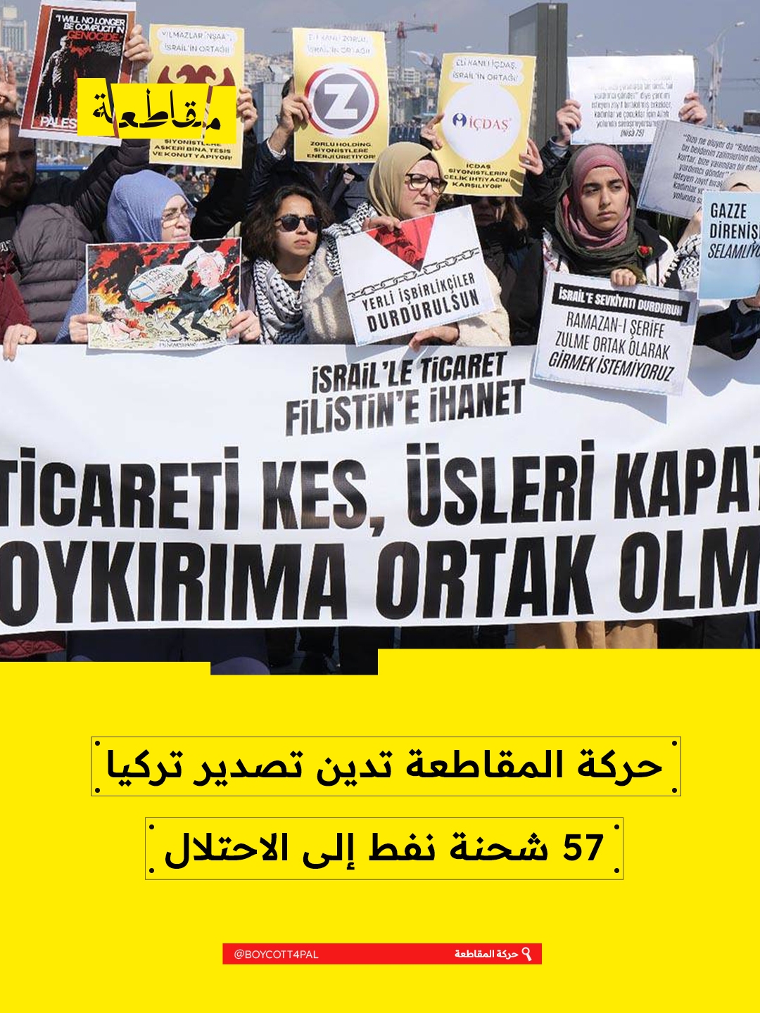 وفي هذا السياق، دعت حركة المقاطعة إلى اتخاذ إجراءات فورية وحازمة لضمان الإنفاذ الكامل للحظر التجاري والطاقي الذي أعلنته تركيا، مؤكدة ضرورة محاسبة الدول والشركات المتورطة، ومنع السفن وشركات الشحن المخالِفة من الاستمرار في نقل الشحنات إلى "إسرائيل"، وفتح تحقيقات رسمية شفافة ونشر نتائجها، إلى جانب وضع آليات رقابة فعّالة لمنع الشحنات السرّية مستقبلًا.