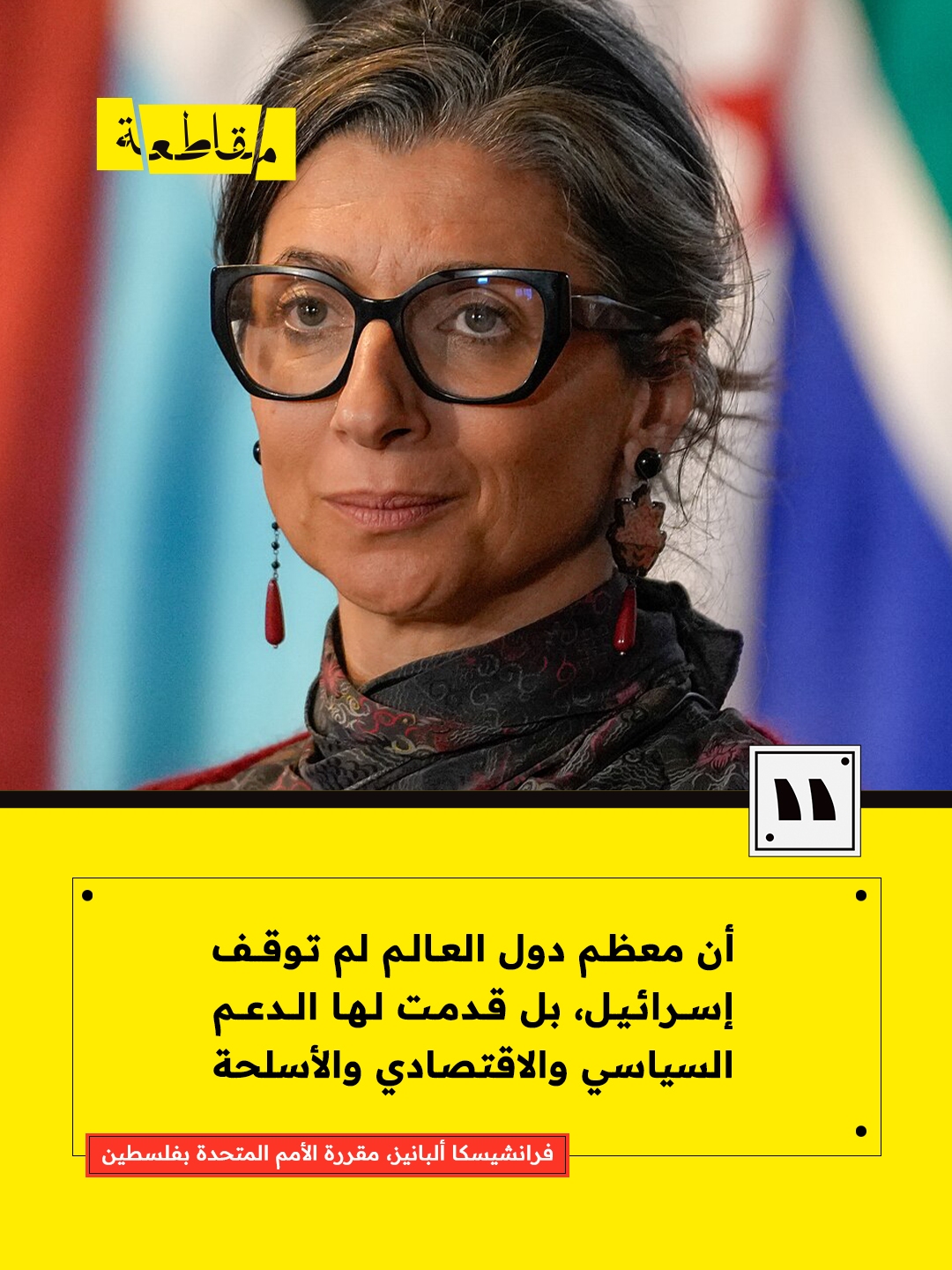 أكدت مقرّرة الأمم المتحدة الخاصة المعنية بحالة حقوق الإنسان في الأراضي الفلسطينية المحتلة، فرانشيسكا ألبانيز أن الوقت قد حان لوضع حدّ لتطبيع الاحتلال غير الشرعي، من خلال الخضوع لإملاءات "إسرائيل"، م