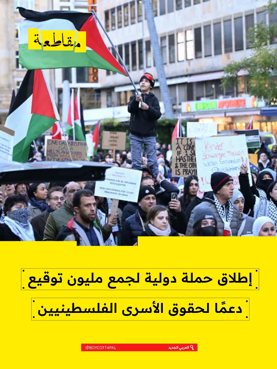 أعلنت "مجموعة العمل الوطنية من أجل فلسطين"، الثلاثاء، من العاصمة المغربية الرباط، إطلاق حملة دولية لجمع "مليون توقيع" دعمًا لحقوق الأسرى الفلسطينيين واللبنانيين في السجون الإسرائيلية، وذلك بالتزامن مع إعلان مماثل في تونس وعددًا من العواصم العربية والعالمية.