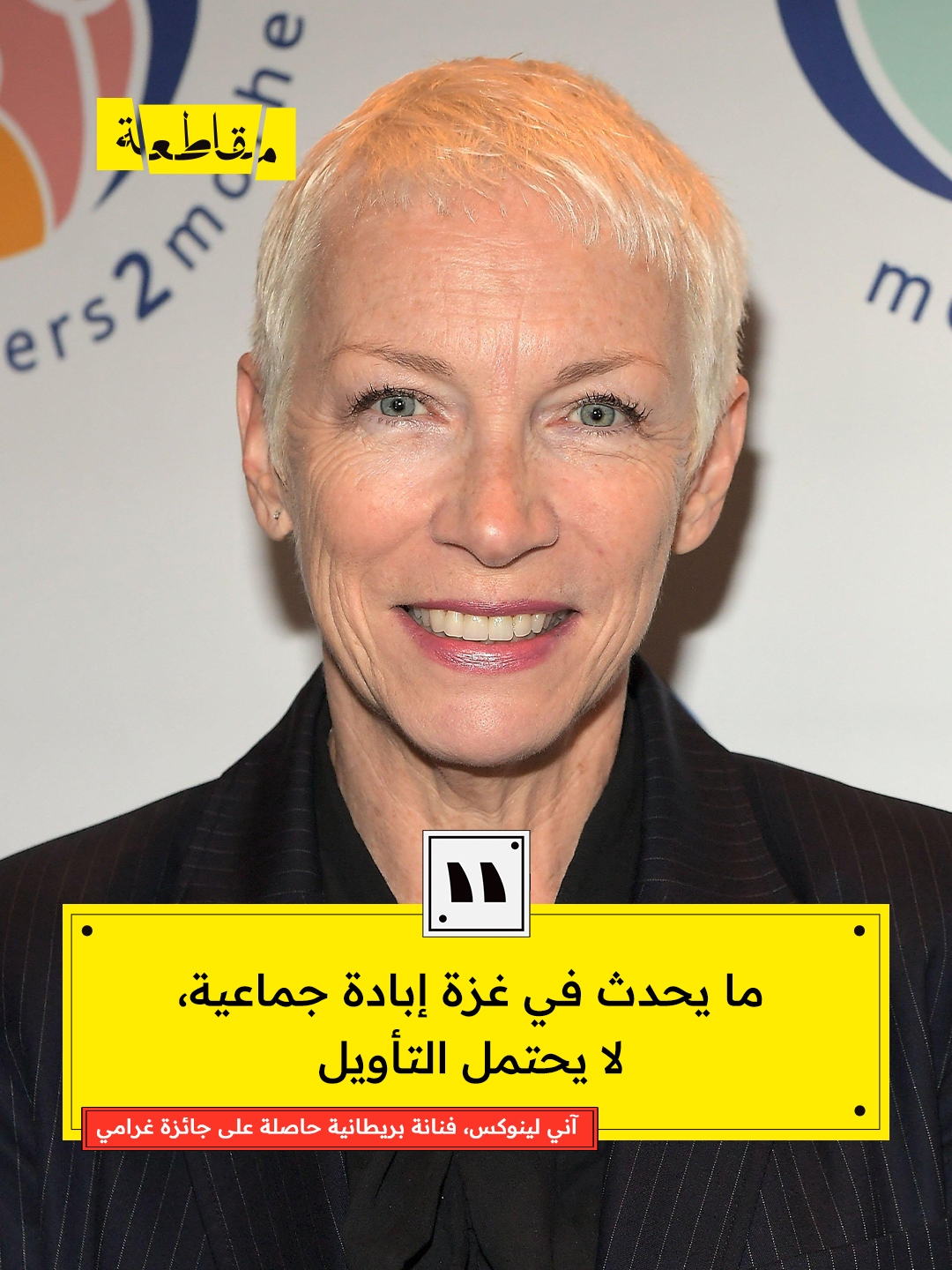 صفت الفنانة البريطانية "آني لينوكس" ما يجري في قطاع غزة بأنه "إبادة جماعية"، مؤكدة أن الأحداث لم تنتهِ بعد، معتبرة أن ما يحدث يمثل "خطة طويلة الأمد تهدف إلى القضاء على الفلسطينيين وإبقائهم محاصرين في واقع مأساوي".