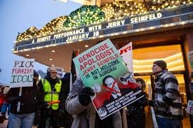 🟡احتجاجات تحاصر مسرح أورورا تنديدًا باستضافة الممثل "جيري ساينفيلد"