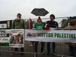 طالب عشرات المتظاهرين بالإفراج عن عمر خالد، بمشاركة “أمهات ضد الإبادة الجماعية” و”اسكتلندا أوقفوا تسليح إسرائيل” و”أصدقاء المضربين عن الطعام في اسكتلندا”، بعدما احتجز بسبب استهدافه قاعدة جوية بريطانية تنديدًا بتسليح الاحتلال.