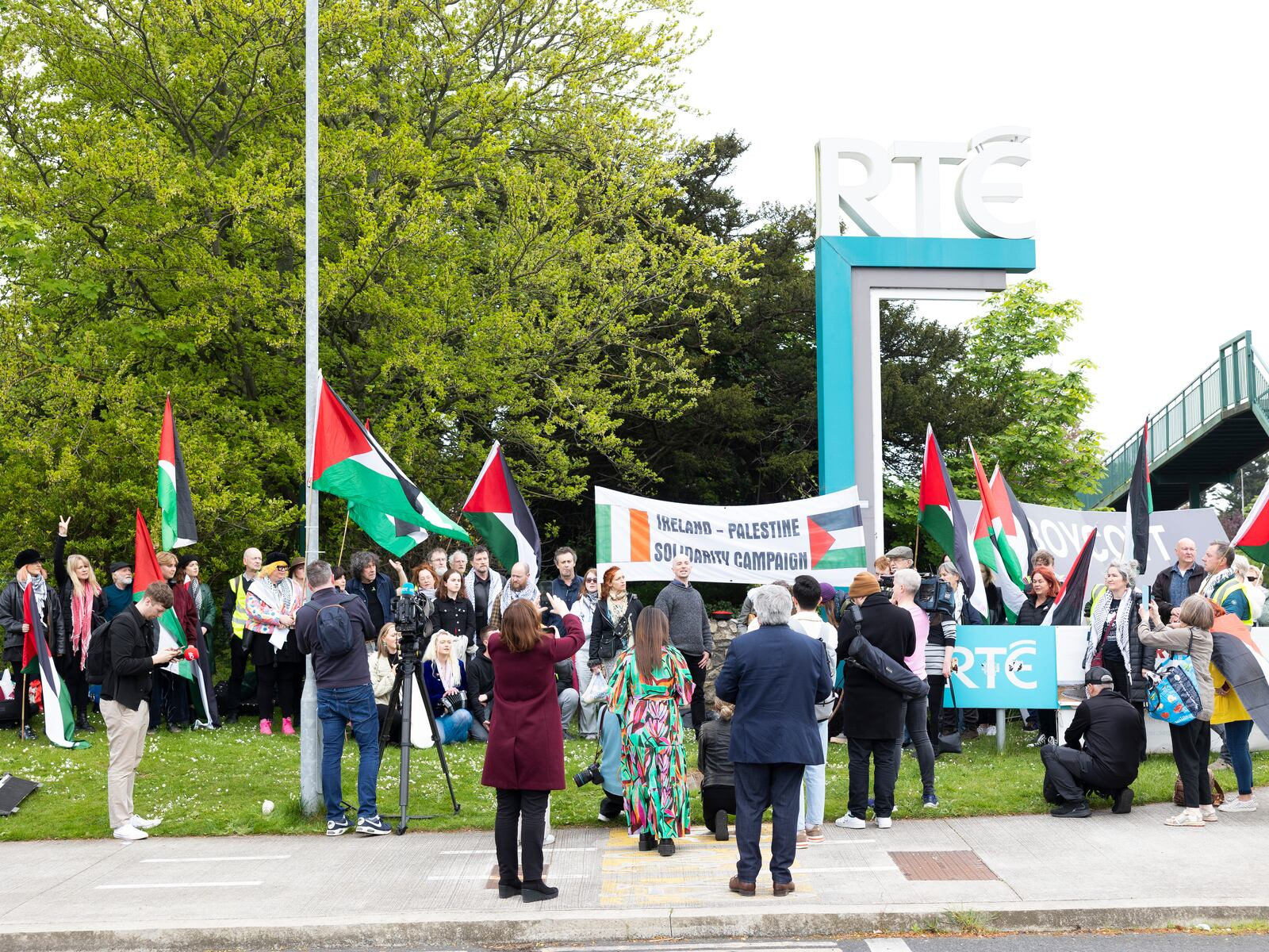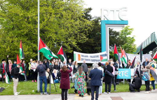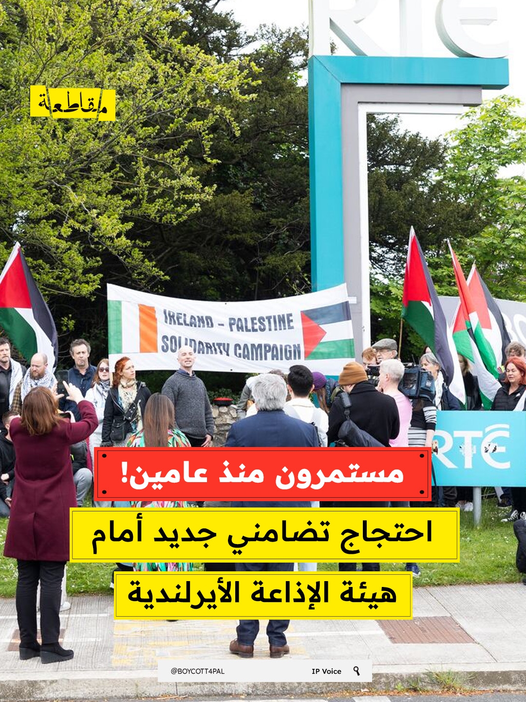 يواصل ناشطون ومتضامنون في العاصمة الأيرلندية دبلن تنظيم وقفاتهم الاحتجاجية أمام مقر هيئة الإذاعة والتلفزيون الأيرلندية (RTÉ) في منطقة "دونيبروك"، وذلك تعبيرًا عن تضامنهم الثابت مع القضية الفلسطينية والمستمر منذ أكثر من عامين.