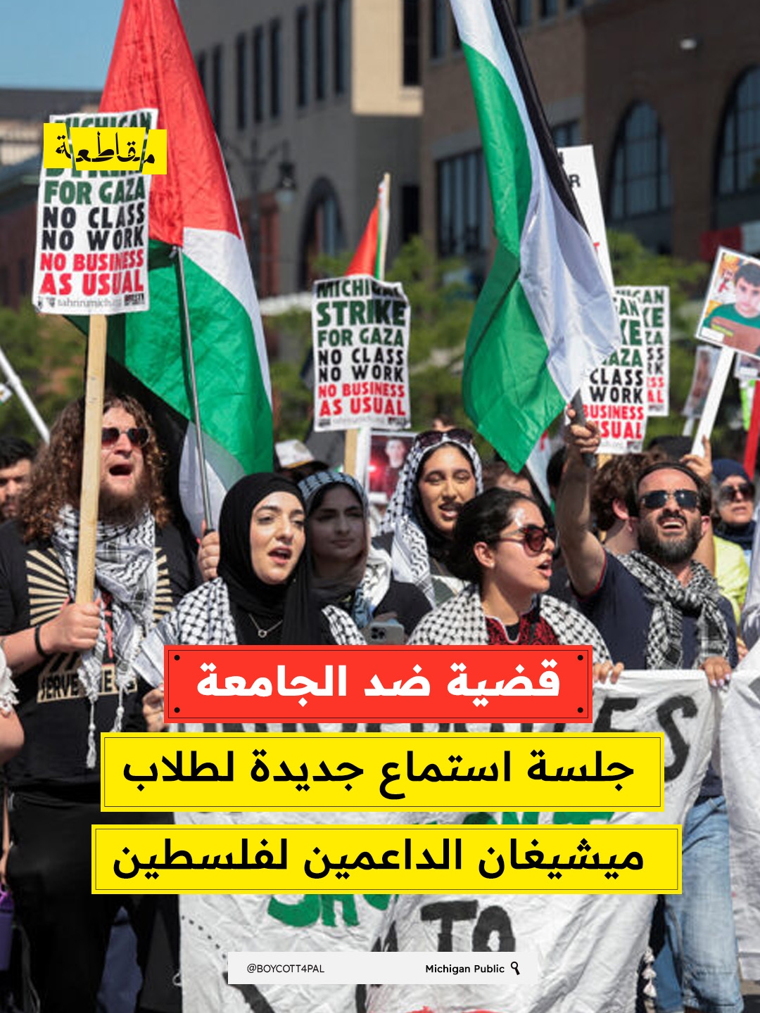 رفع طلاب جامعة ميشيغان، من بينهم زينب حكيم وإيمان علي، دعوى قضائية ضد مجلس الأمناء بعد فصلهم من وظائفهم الطلابية بسبب مشاركتهم في احتجاجات سلمية للمطالبة بسحب استثمارات الجامعة من الاحتلال.
