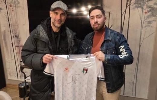 في لفتة تضامنية جديدة، وقّع الإسباني بيب غوارديولا، المدير الفني لنادي مانشستر سيتي الإنجليزي، على قمصان فريق “غزة الإرادة” لكرة قدم البتر، في رسالة دعم للاعبي الفريق وللشعب الفلسطيني.