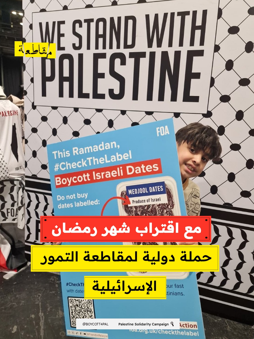 مع اقتراب شهر رمضان المبارك، أطلقت جمعية أصدقاء الأقصى حملتها السنوية للتحقق من ملصقات التمور عند شرائها، بهدف ضمان عدم دعم المنتجات الإسرائيلية ومقاطعتها. وتدعو الحملة جميع المستهلكين لتجنب شراء