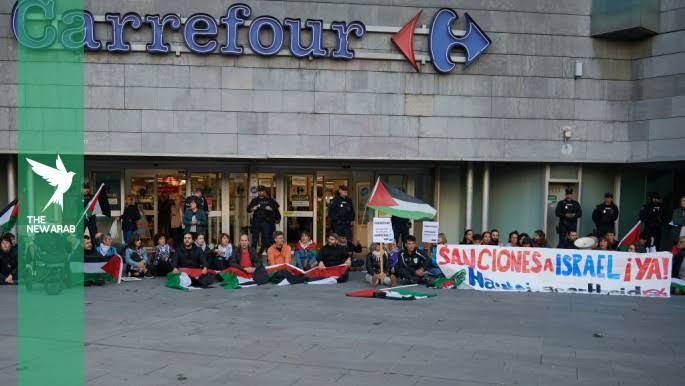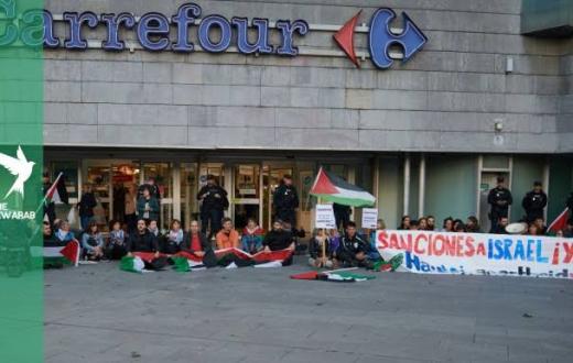 نظم نشطاء مؤيدون لفلسطين أمس السبت في مدينة خيخون الإسبانية وقفة احتجاجية أمام فرع شركة التجزئة متعددة الجنسيات "كارفور"، ومقرها في فرنسا، للمطالبة بمقاطعة الشركة بسبب تورطها في دعم جرائم الاحتلال ا