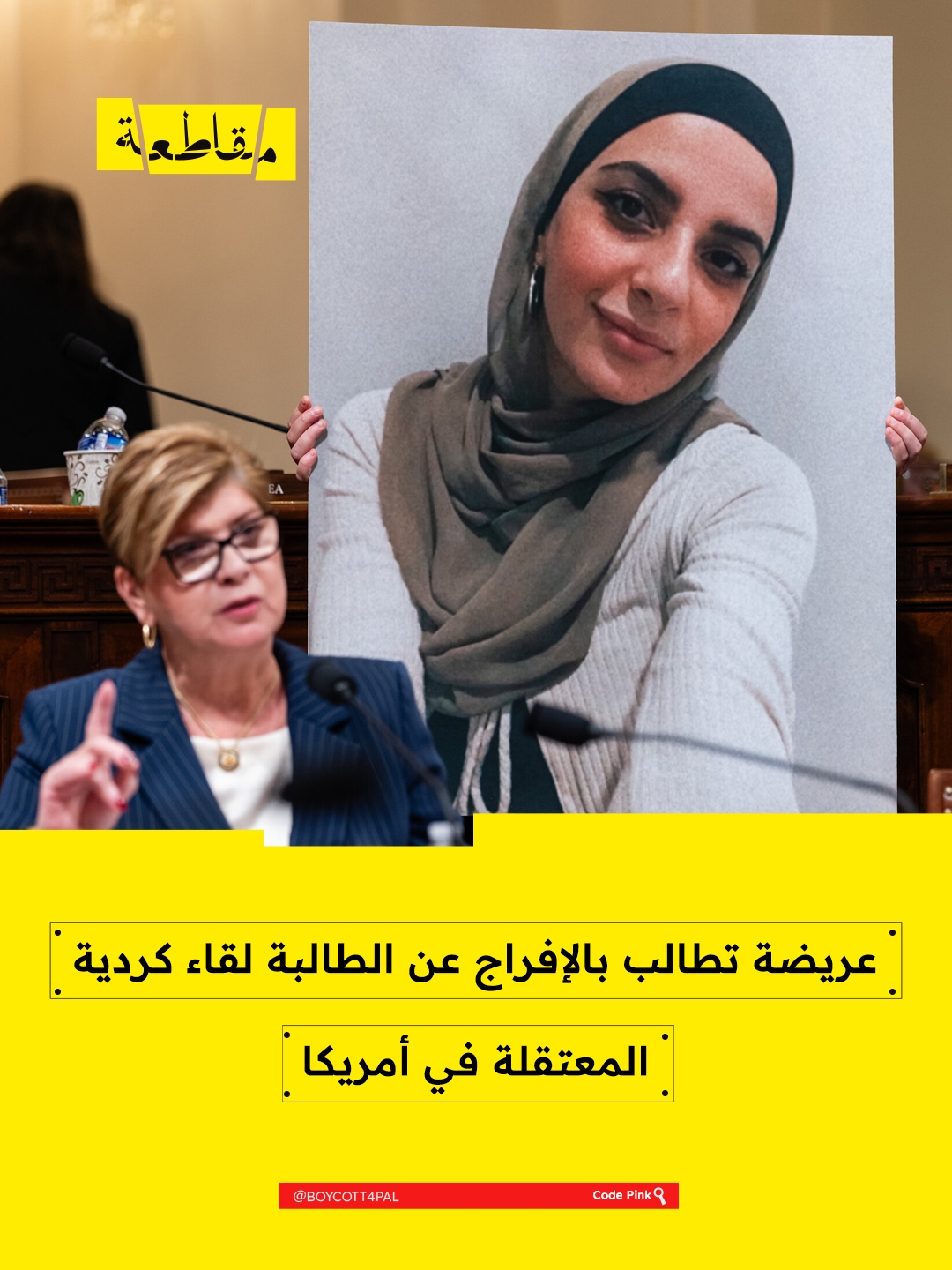 دعت حركة “كود بينك” إلى توقيع عريضة لدعم الفلسطينية لقاء كورديا، البالغة من العمر 33 عامًا، والمحتجزة لدى إدارة الهجرة والجمارك الأمريكية (ICE) منذ ما يقارب العام.