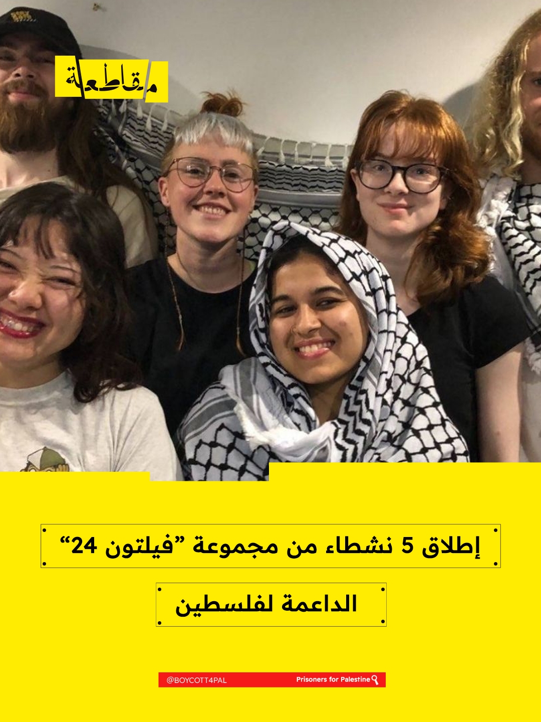 مجموعة "فيلتون 24" تابعة لحركة فلسطين، وكانت قد اعتُقلت منذ أغسطس 2024 عقب استهدافها مصنع “إلبيت سيستمز” في بريستول.