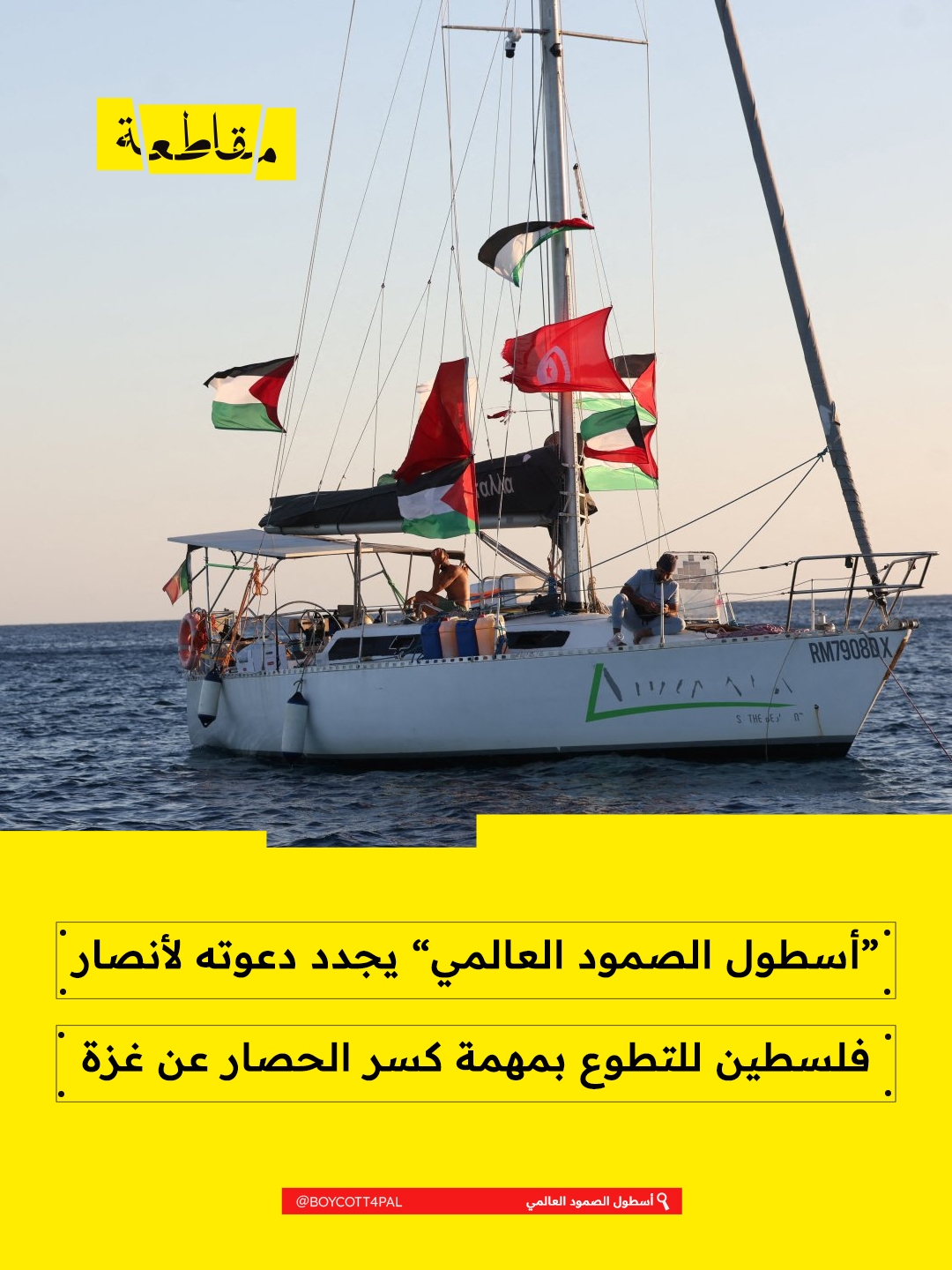 دعا أسطول الصمود العالمي، جميع أنصار فلسطين للمشاركة في مهمته الواسعة هذا الربيع، المقررة في 29 شهر آذار المقبل ، لكسر الحصار عن غزة ، والتي تشمل إرسال مزيد من القوارب وتنظيم آلاف التحركات المنسقة تنديدًا بالجرائم المستمرة بحق الشعب الفلسطيني، ولممارسة ضغط دولي لإنهاء هذه الانتهاكات والجرائم.