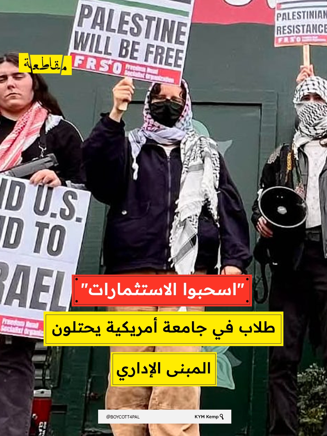 "اسحبوا الاستثمارات " طالب في جامعة أمريكية يحتلون المبنى الإداري
