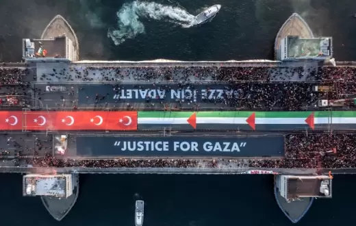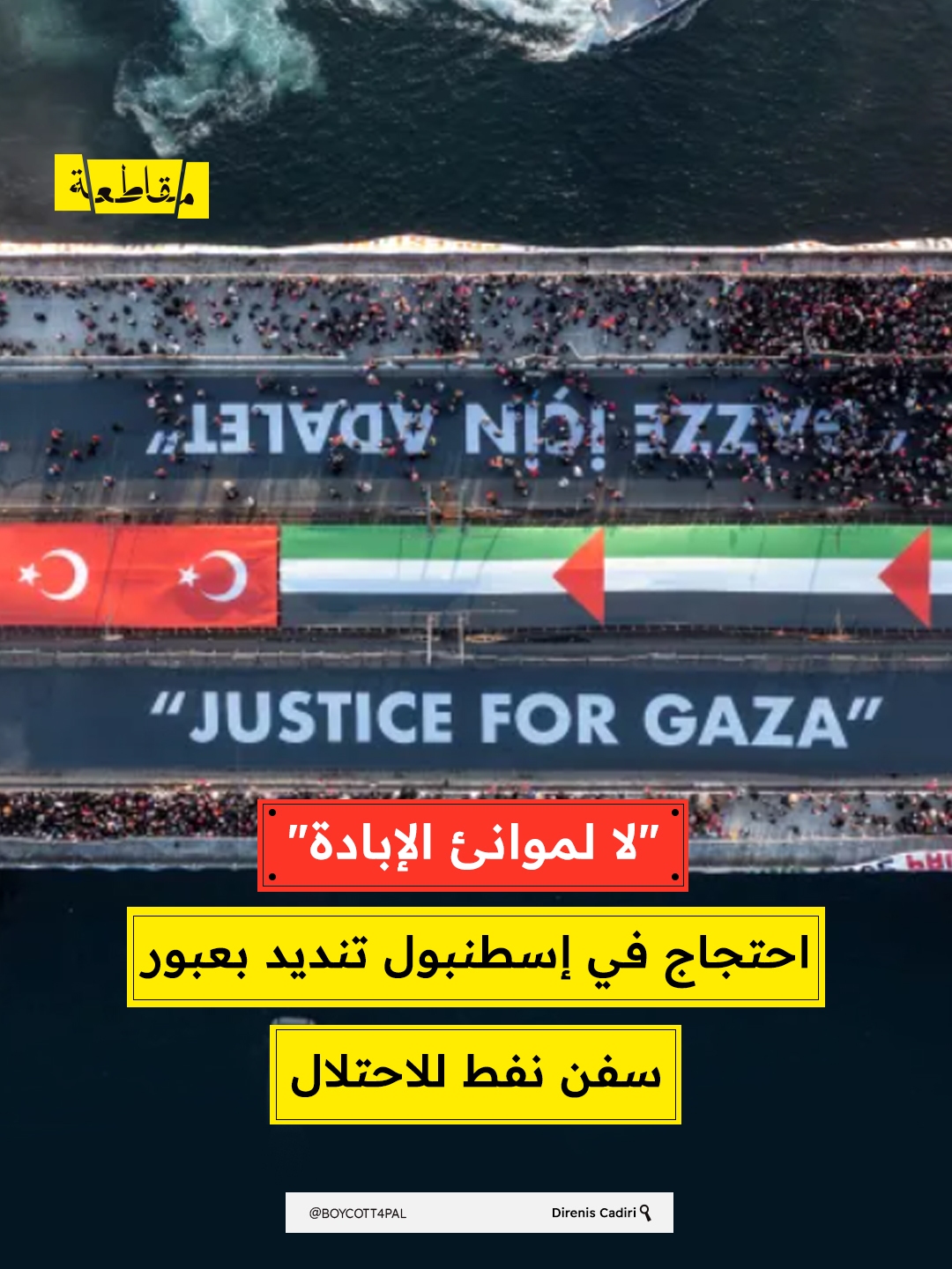 نظم نشطاء متضامنون مع فلسطين في تركيا، من مجموعة Direnis Cadiri، احتجاج في إسطنبول تنديدًا بعبور ناقلة النفط “نيسوس كريستيانا” عبر مضيق البوسفور، القادمة من ميناء جيهان ومتجهة إلى ميناء حيفا.