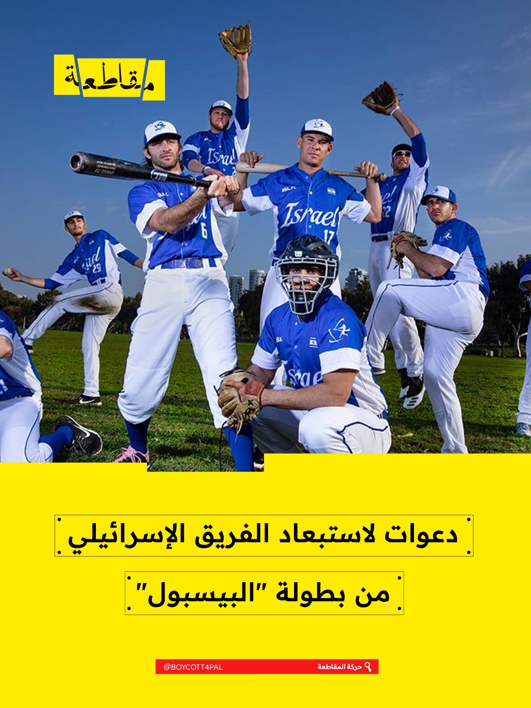 ت حركة المقاطعة إلى مقاطعة فريق البيسبول الإسرائيلي في بطولة العالم 2026، المقرر إقامتها بين 5 و17 مارس في سان خوان وبورتو ريكو وميامي وهيوستن بالولايات المتحدة، وطوكيو باليابان.