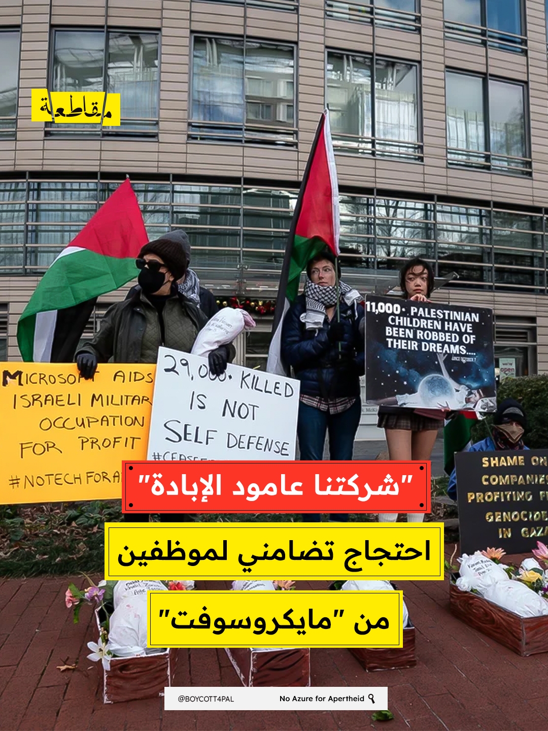 نظمت مجموعة "لا لأزور للفصل العنصري" وقفات احتجاجية يوم الثلاثاء 24 فبراير، أمام مكاتب شركة مايكروسوفت في يوم "العودة إلى المكاتب"، للتأكيد على رفض استخدام التكنولوجيا في دعم الاحتلال الإسرائيلي ونظام الفصل العنصري.