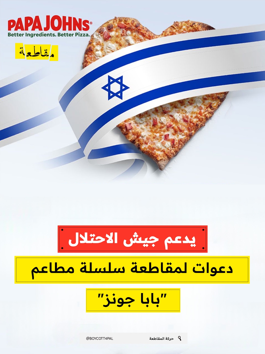 في شهر رمضان المبارك، حثّت "حركة المقاطعة" على مقاطعة سلسلة مطاعم “بابا جونز” وجميع الشركات المتواطئة مع الاحتلال الإسرائيلي، بعد أن كشف فرع السلسلة في "إسرائيل" عن تقديمه آلاف الوجبات لجنود جيش الاحتلال خلال حرب الإبادة المستمرة على قطاع غزة.