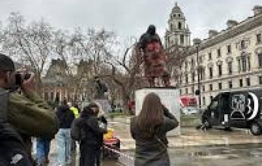 شهد تمثال رئيس الوزراء البريطاني الأسبق ونستون تشرشل في ساحة البرلمان بمنطقة ويستمنستر، أعمالًا احتجاجية من قبل أنصار فلسطين ، حيث كتبوا على التمثال عبارة “مجرم حرب صهيوني”، في رسالة تُعبر عن رفض سياسات تشرشل التاريخية تجاه القضية الفلسطينية.