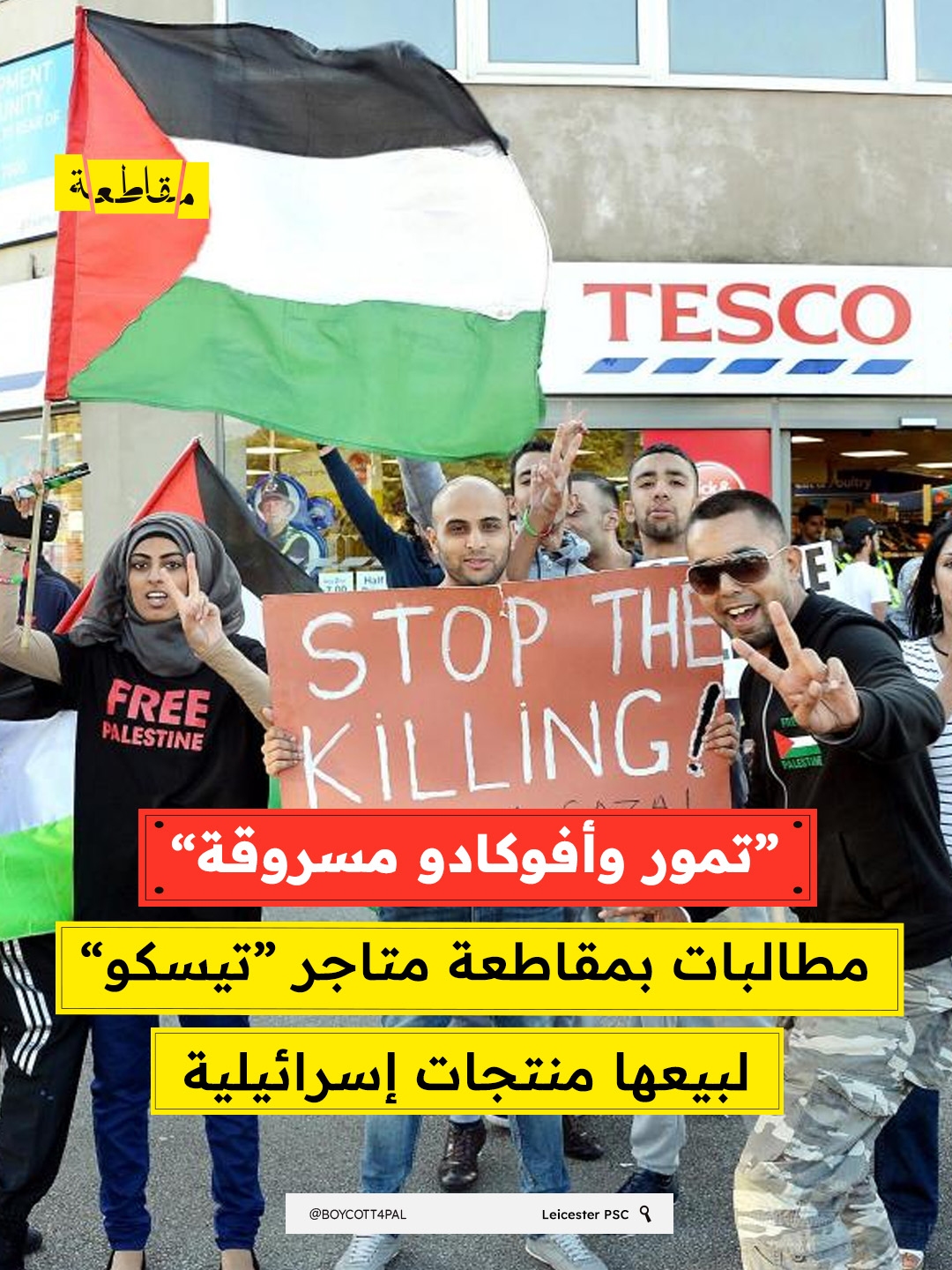 دعت حملة التضامن مع فلسطين في ليستر إلى مقاطعة سلسلة متاجر “تيسكو”، منددة باستمرارها في بيع منتجات إسرائيلية في ظل حظر الاحتلال إدخال المساعدات الإنسانية إلى غزة وتهجير العائلات الفلسطينية من أراضيها في الضفة الغربية.
